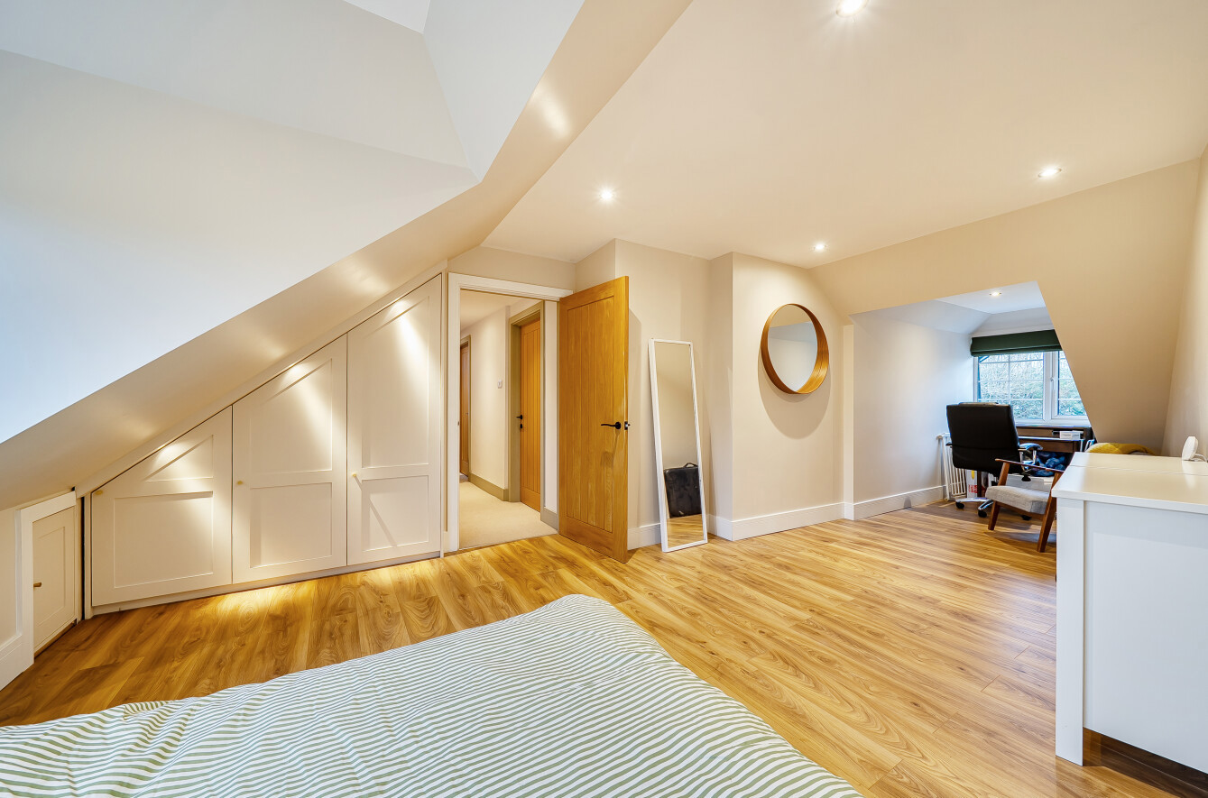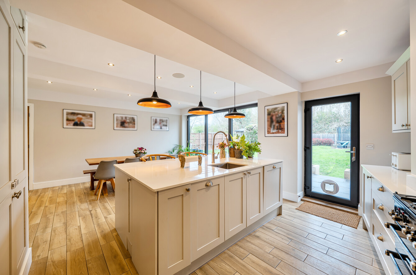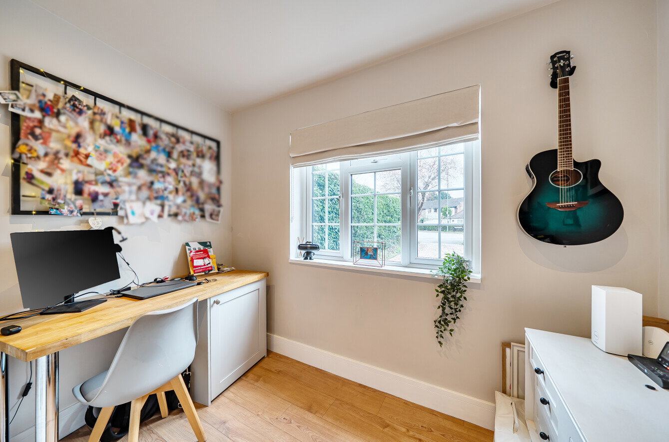 Situated in a highly sought-after location, this charming period detached chalet bungalow offers an excellent blend of character and modern living. The property provides well-balanced accommodation including four bedrooms, two reception rooms and two bathrooms, making it ideal for families or those seeking a peaceful retreat.The home has been extensively renovated during the current ownership, with every room thoughtfully improved and re-plastered to create a fresh and contemporary feel throughout. The spacious interiors are filled with natural light, while the main living areas offer a warm and welcoming atmosphere.The stylish kitchen forms the heart of the home and benefits from underfloor heating, which also extends to the office, downstairs bathroom and main lounge, all operated via an app-based Heatmiser system for modern comfort and efficiency. Bluetooth ceiling speakers have been installed in both the kitchen and family bathroom, adding a further touch of convenience and modern living.Further improvements include new internal doors throughout the majority of the house, upgraded radiators, and new double glazing to most rooms, along with a recently fitted front door, patio doors from the lounge and a new kitchen door.Upstairs, the property offers well-proportioned bedrooms including a beautifully updated principal bedroom with en-suite, along with a modernised family bathroom.Externally, the garden has been comprehensively redesigned to create a versatile and low-maintenance outdoor space. The previous greenhouse and rear garage have been removed, making way for a newly laid patio, improved side access and attractive planter beds, all completed within the last two years. Provision has also been made for electrics to the rear of the garden, allowing for the potential installation of a garden room or studio on the existing concrete base.The property also benefits from off-street parking and a garage, providing both convenience and additional storage.Beautifully maintained and thoughtfully upgraded, this impressive home presents a rare opportunity to acquire a character property that combines period charm with modern comfort.