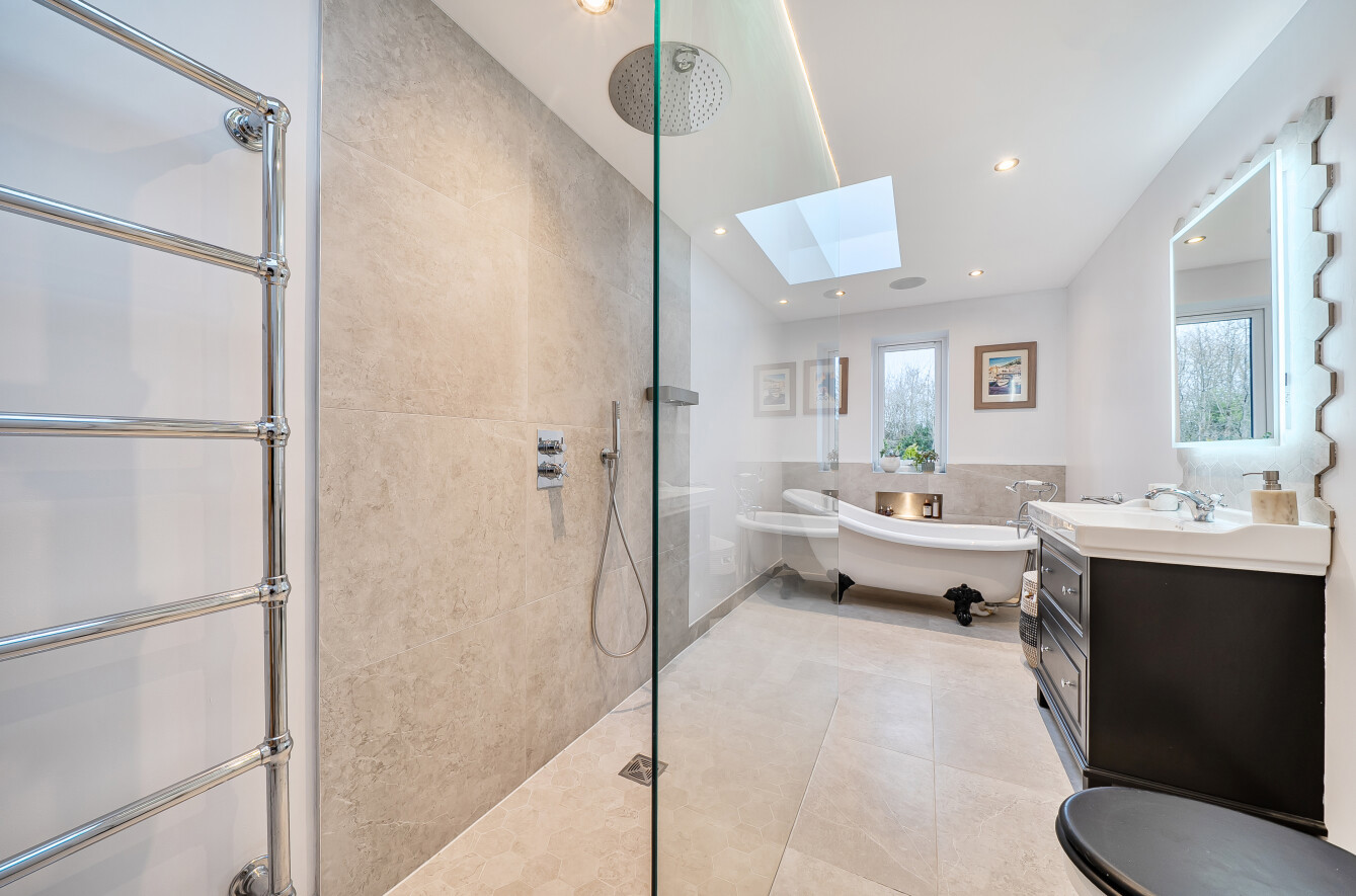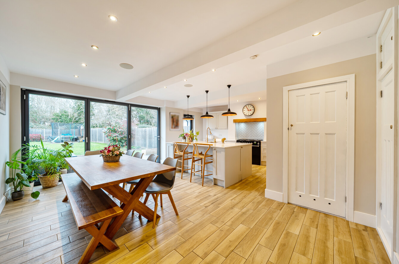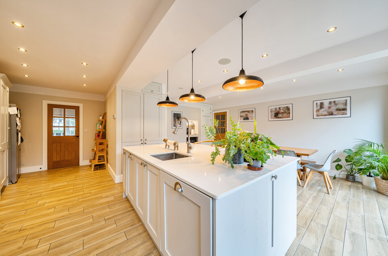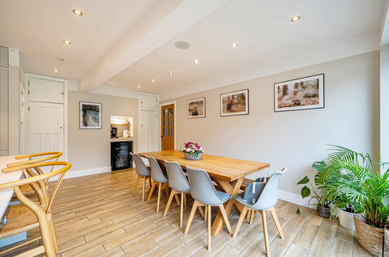 Situated in a highly sought-after location, this charming period detached chalet bungalow offers an excellent blend of character and modern living. The property provides well-balanced accommodation including four bedrooms, two reception rooms and two bathrooms, making it ideal for families or those seeking a peaceful retreat.The home has been extensively renovated during the current ownership, with every room thoughtfully improved and re-plastered to create a fresh and contemporary feel throughout. The spacious interiors are filled with natural light, while the main living areas offer a warm and welcoming atmosphere.The stylish kitchen forms the heart of the home and benefits from underfloor heating, which also extends to the office, downstairs bathroom and main lounge, all operated via an app-based Heatmiser system for modern comfort and efficiency. Bluetooth ceiling speakers have been installed in both the kitchen and family bathroom, adding a further touch of convenience and modern living.Further improvements include new internal doors throughout the majority of the house, upgraded radiators, and new double glazing to most rooms, along with a recently fitted front door, patio doors from the lounge and a new kitchen door.Upstairs, the property offers well-proportioned bedrooms including a beautifully updated principal bedroom with en-suite, along with a modernised family bathroom.Externally, the garden has been comprehensively redesigned to create a versatile and low-maintenance outdoor space. The previous greenhouse and rear garage have been removed, making way for a newly laid patio, improved side access and attractive planter beds, all completed within the last two years. Provision has also been made for electrics to the rear of the garden, allowing for the potential installation of a garden room or studio on the existing concrete base.The property also benefits from off-street parking and a garage, providing both convenience and additional storage.Beautifully maintained and thoughtfully upgraded, this impressive home presents a rare opportunity to acquire a character property that combines period charm with modern comfort.