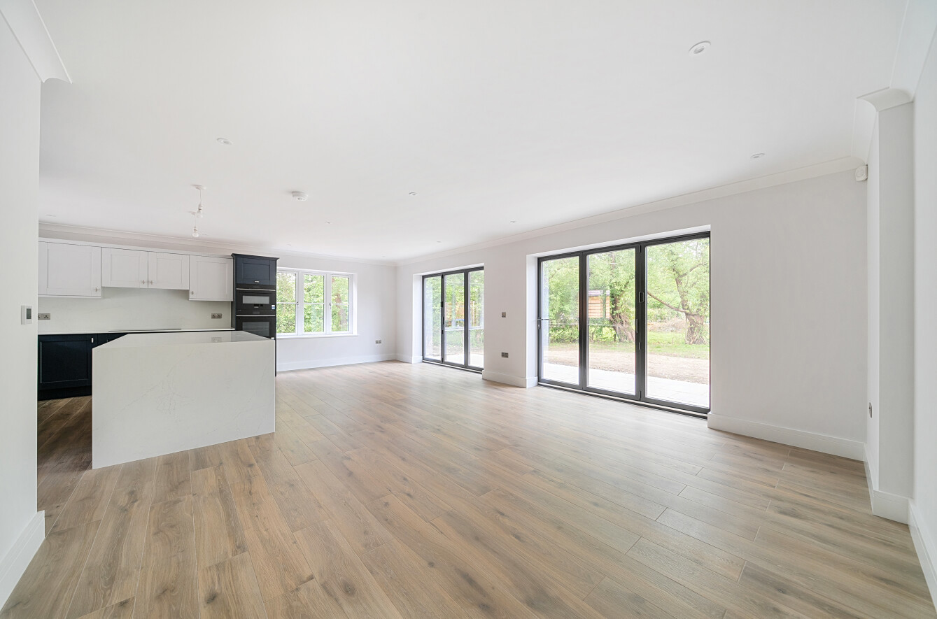 - Open-plan kitchen/dining room with central island and bi-fold doors to rear garden