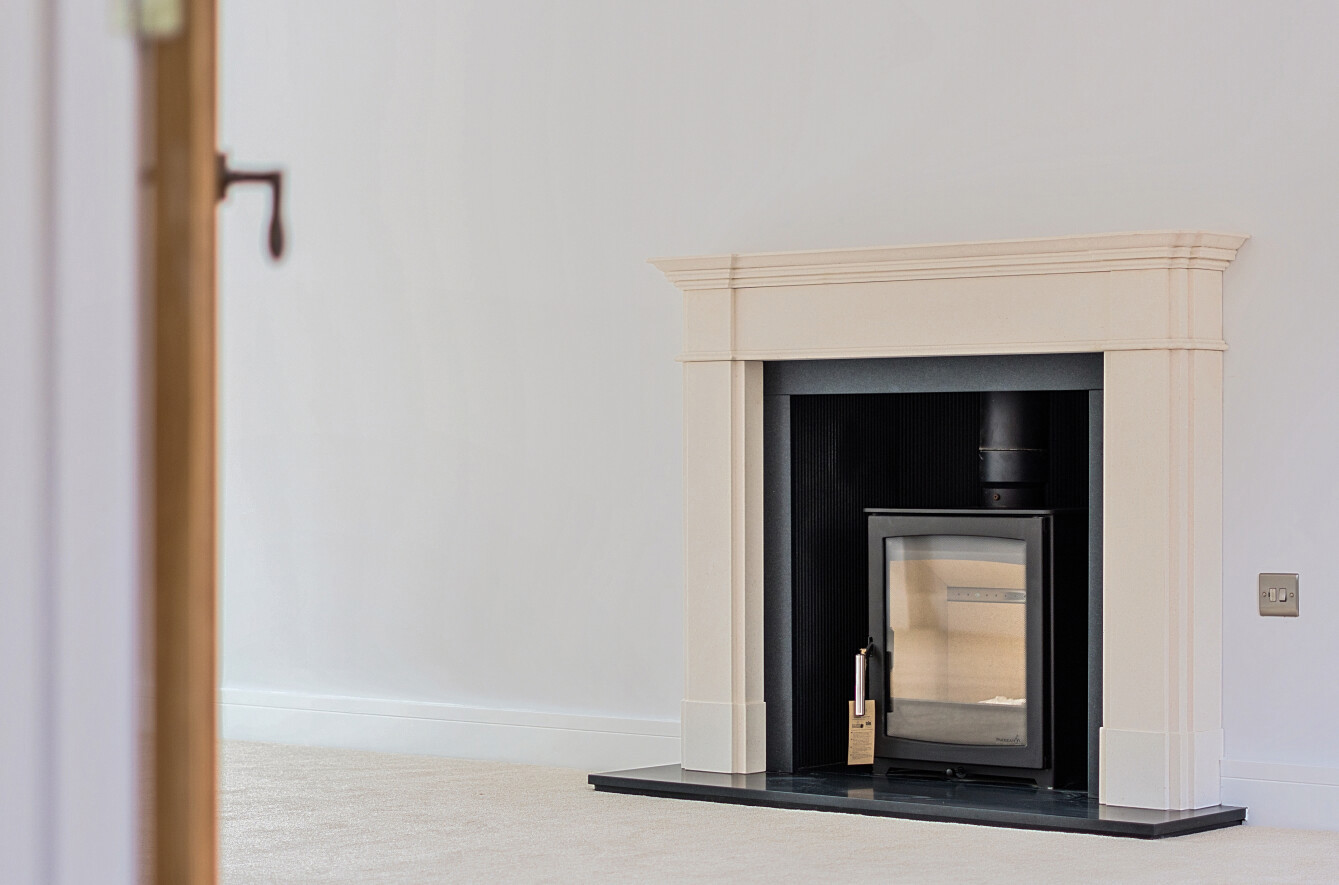 - Spacious living room with wood burning stove.
