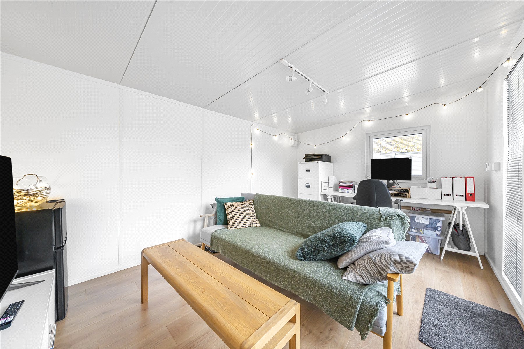 Outside, the property enjoys a substantial south facing garden extending to over 110ft, an ideal space for relaxation and outdoor entertaining. Towards the end of the garden sits The Green Retreat; an impressive outbuilding with power and cabled Wi-FI, offering the perfect space for a home office, studio, or hobby room.