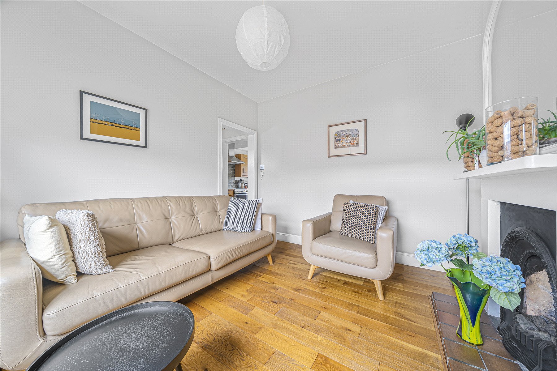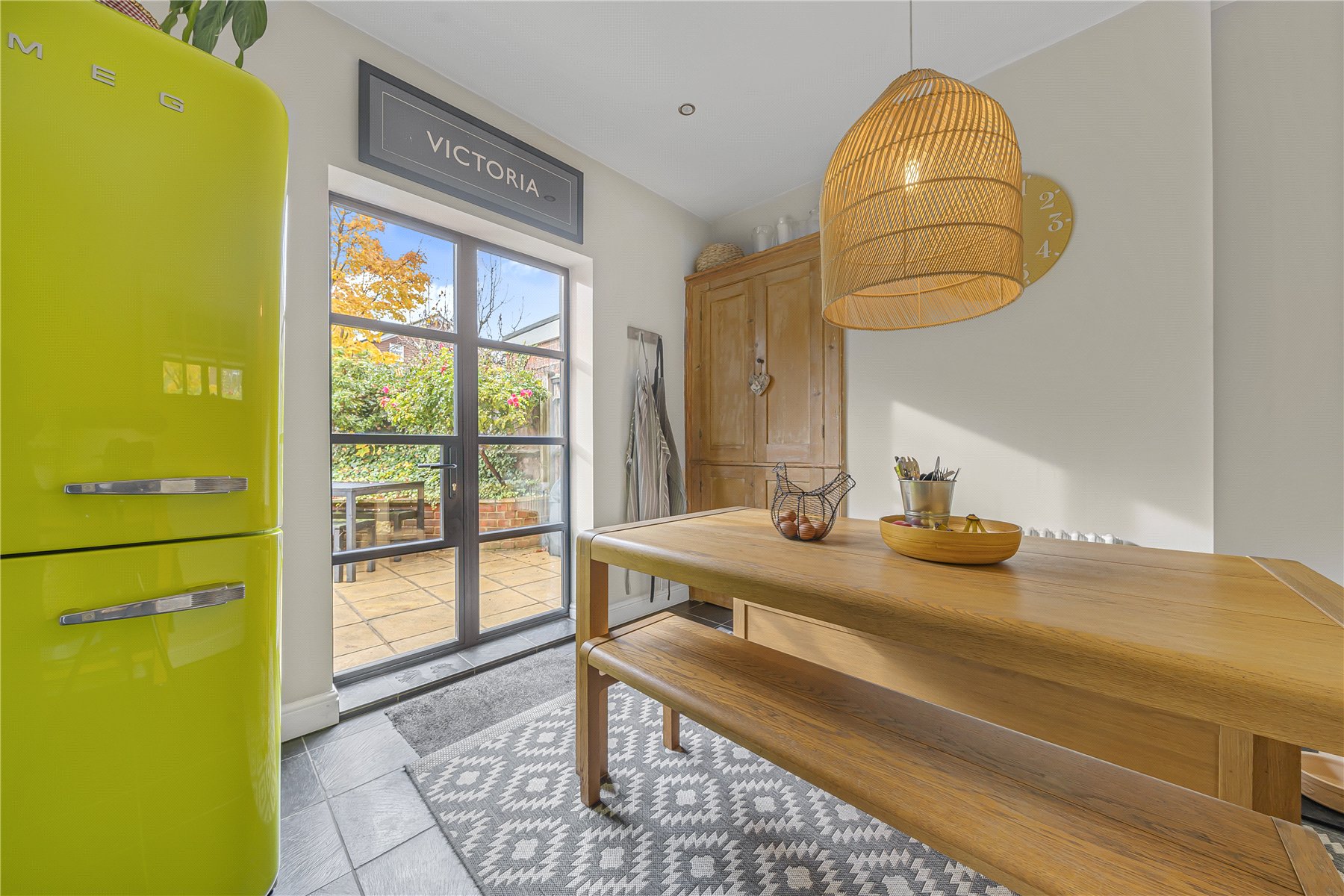 The ground floor offers two inviting reception rooms. The front aspect lounge features a beautiful Victorian archway fireplace, solid wood flooring and a cast iron column radiator, creating a warm and welcoming atmosphere. To the rear, the dining room adjoins the kitchen, which has been thoughtfully fitted with a range of base and eye-level units, solid wood worktops, and space for appliances.