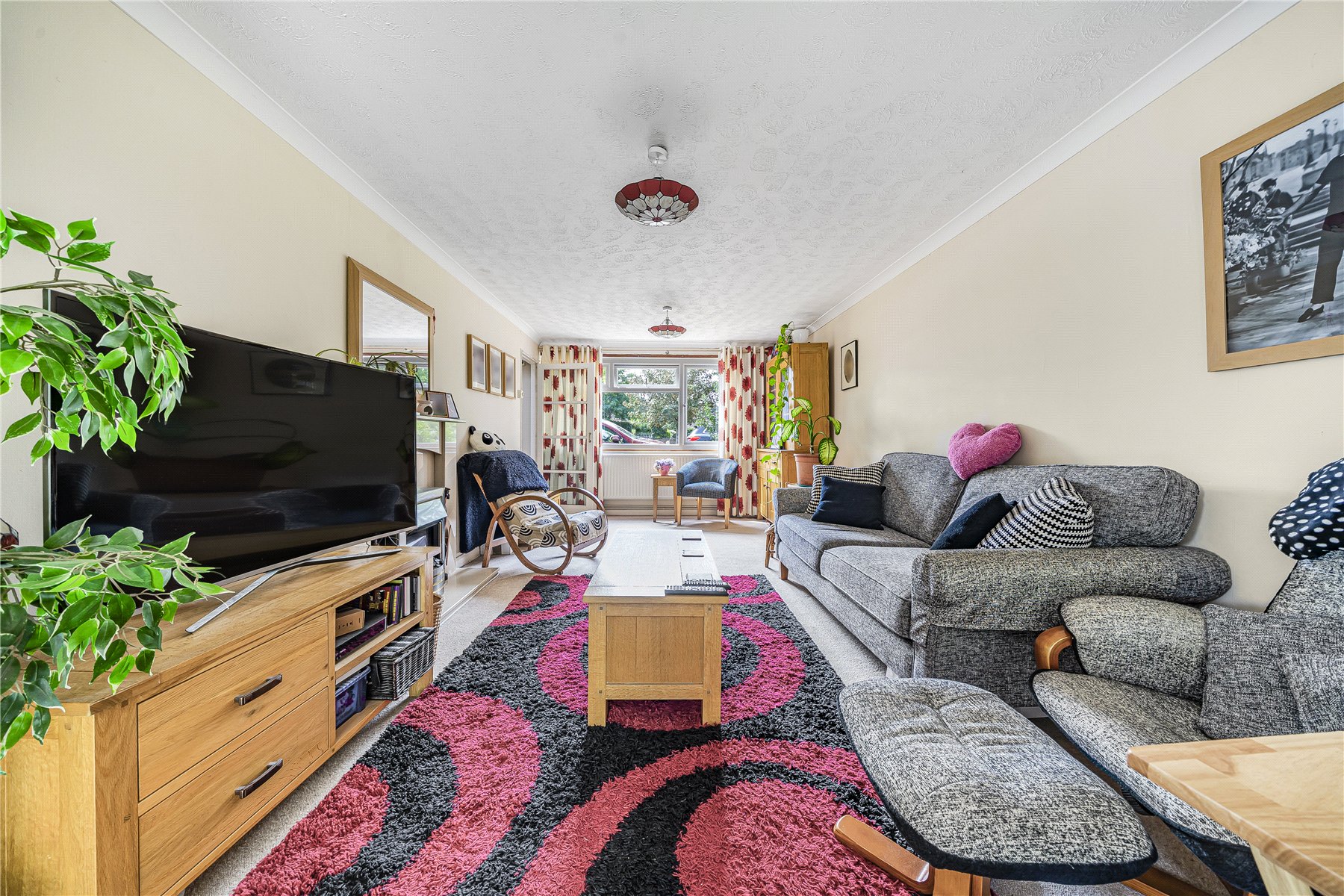 Backing directly onto the picturesque Basingstoke Canal, the property enjoys a peaceful and scenic setting, with a generous rear garden and two versatile outbuildings with power, ideal for those working from home or in need of studio or storage space.