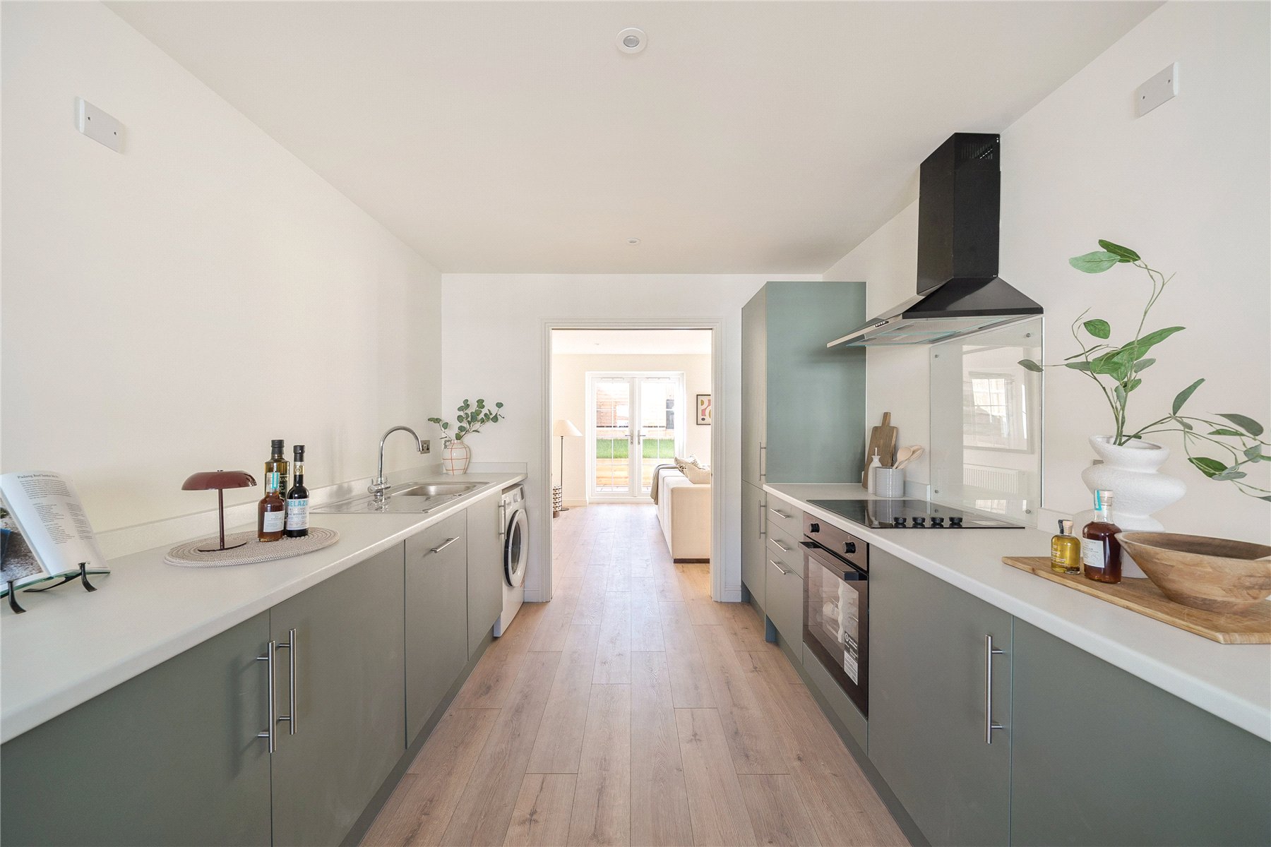 - Open-plan kitchen diner with integrated appliances