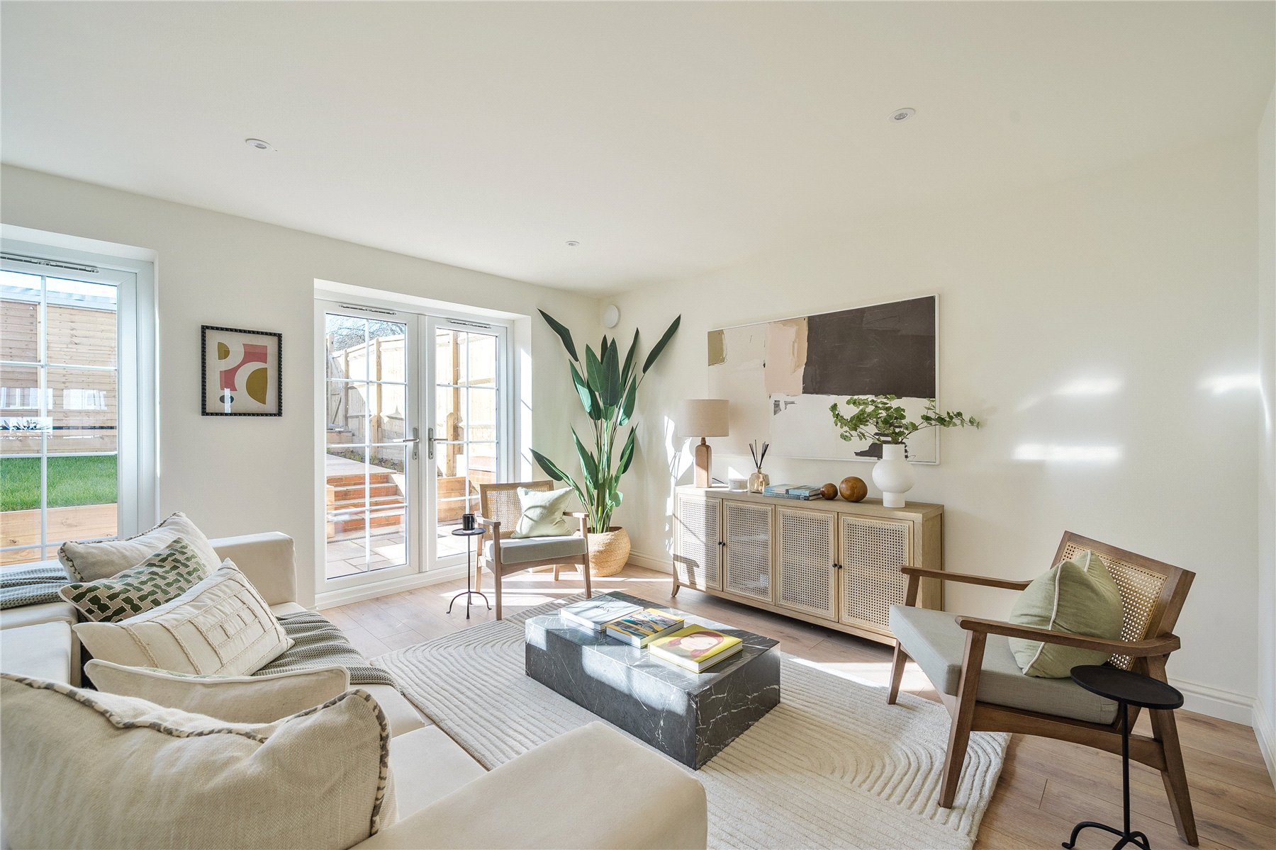 - Bright living space with engineered flooring