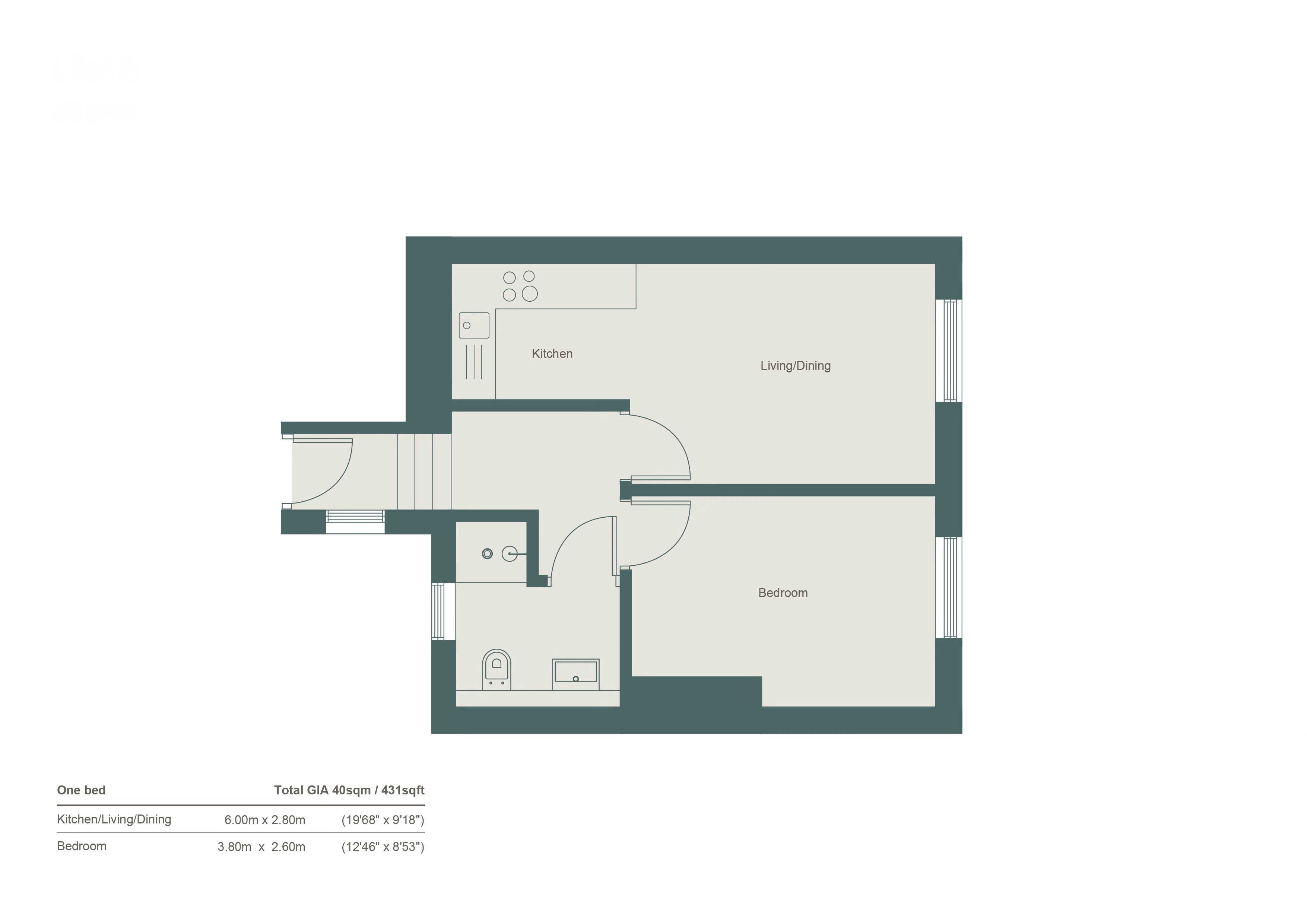 - First floor one bedroom apartment