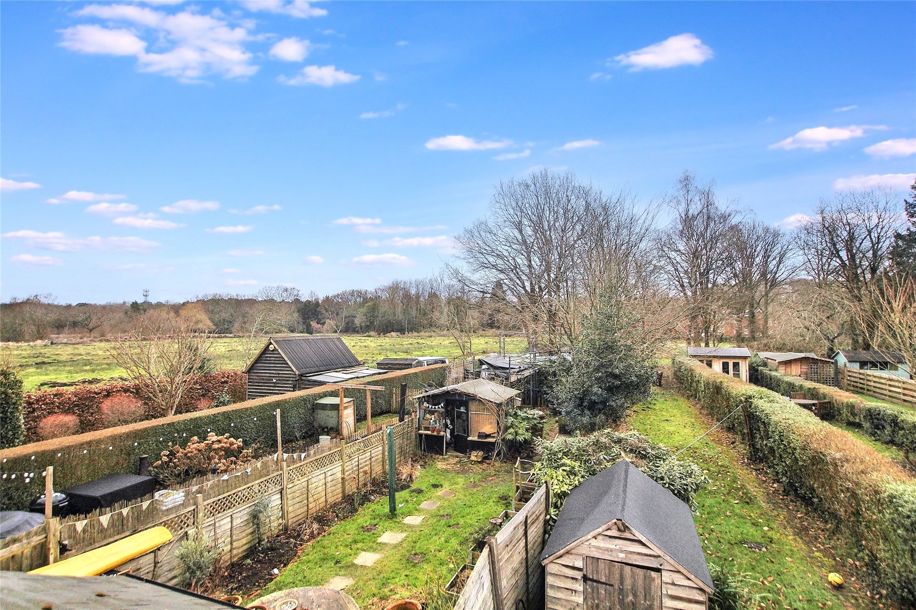 The rear garden extends to a generous size with a brick patio and shed adjacent to the rear of the property. Beyond is extensive lawn with an impressive backdrop of mature trees. The environment provides a tranquil atmosphere to enjoy all year round and is definitely one for those seeking a true taste of the country. The front adjoins a private road with delightful wooded views beyond.