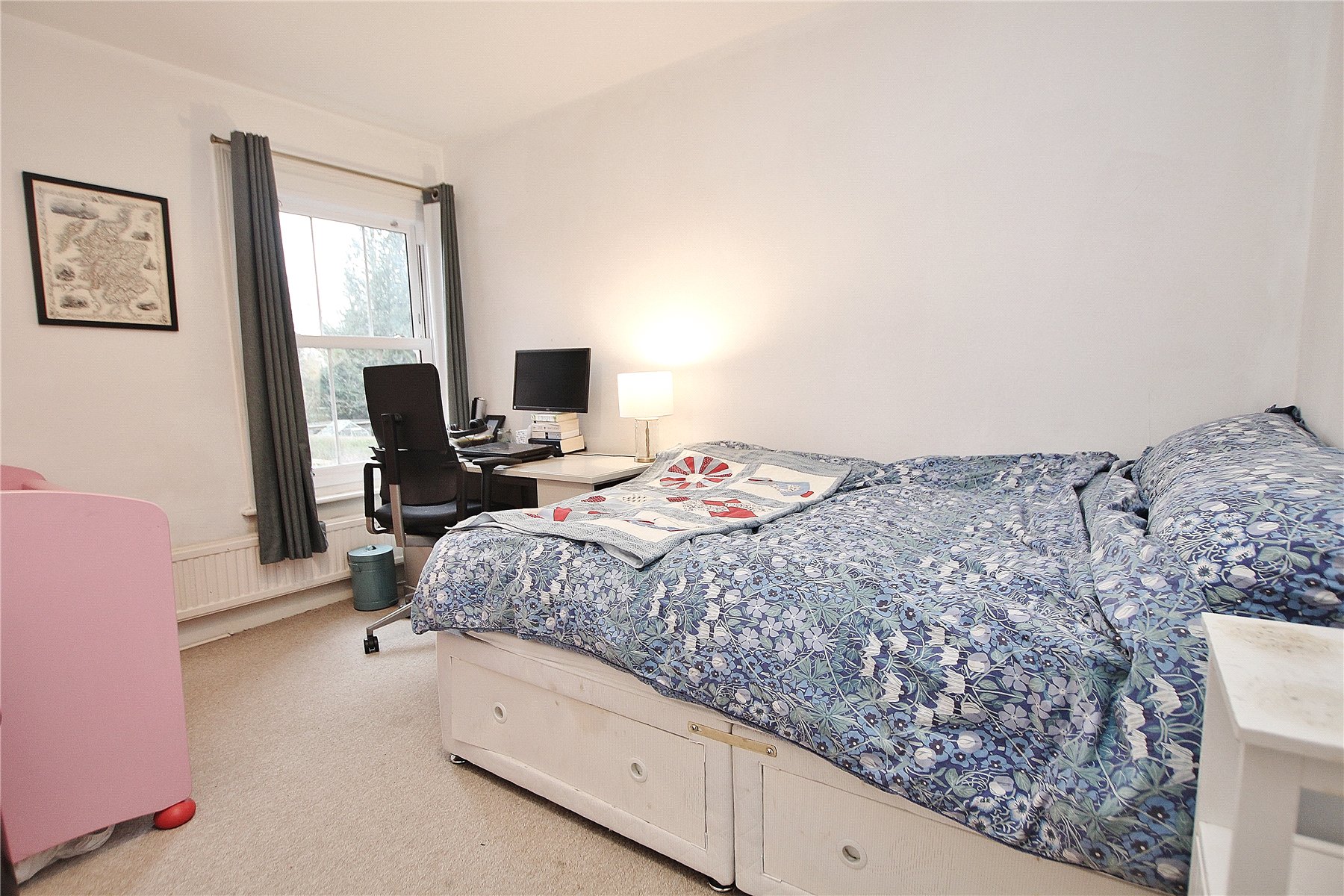 Downstairs has a traditional Edwardian layout with two separate reception rooms, including a front aspect sitting room with a feature exposed red brick fireplace. The dining room comes with a useful understairs storage cupboard and in turn leads to a comprehensively fitted kitchen to include a built-in oven and hob. Adjoining is a modern white three-piece bathroom. Upstairs is no less impressive and comes with three good sized bedrooms. Other notable features include replacement of the windows (except the front two) as well as the front and rear door.