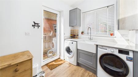 A particularly spacious utility room offers excellent additional storage and further access to the garden, while a well-appointed downstairs cloakroom completes the ground floor accommodation.