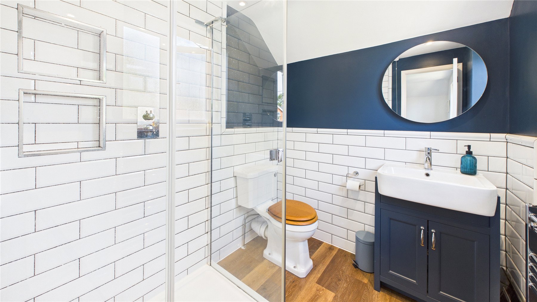 Upstairs, the principal bedroom benefits from a stylish en suite shower room. Three further well-proportioned bedrooms are served by a modern family bathroom, all designed to a high standard and offering excellent versatility for family living.