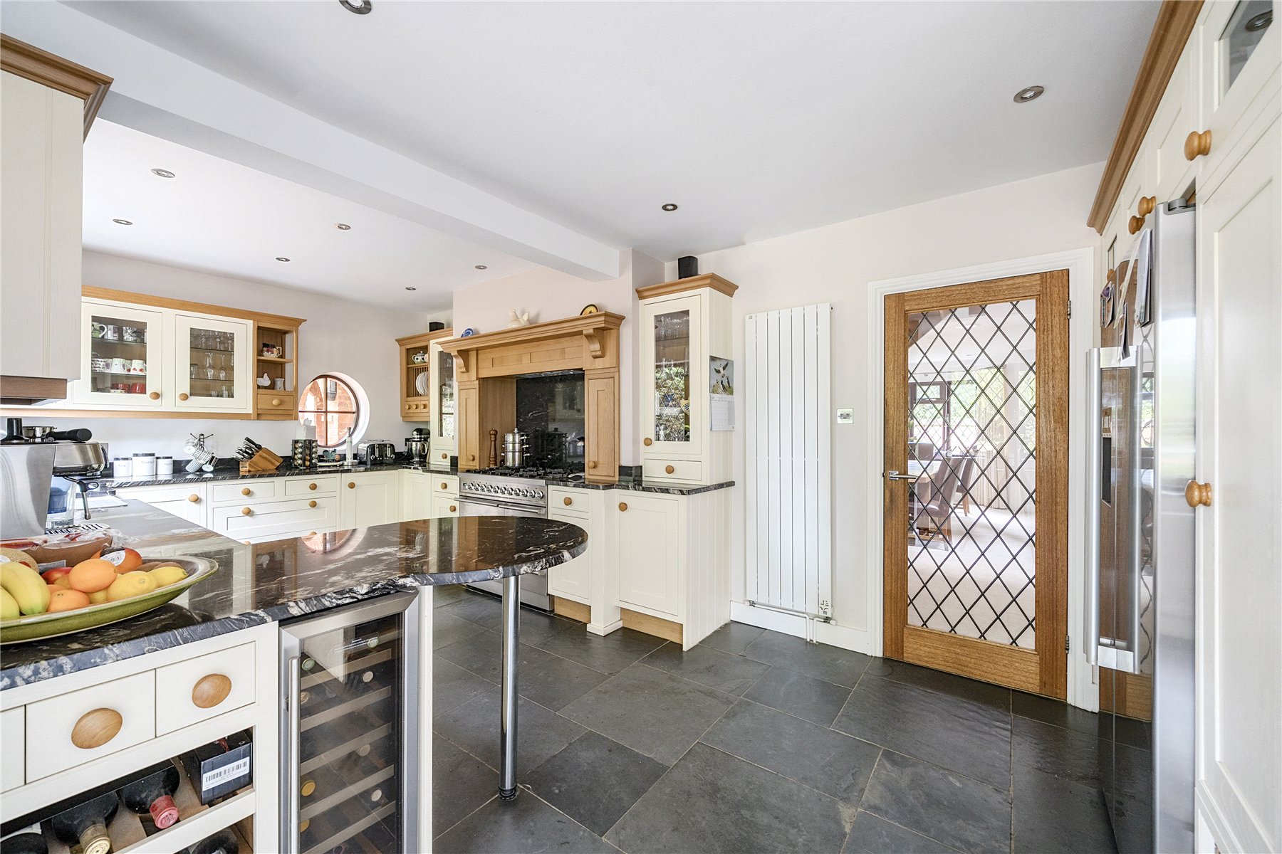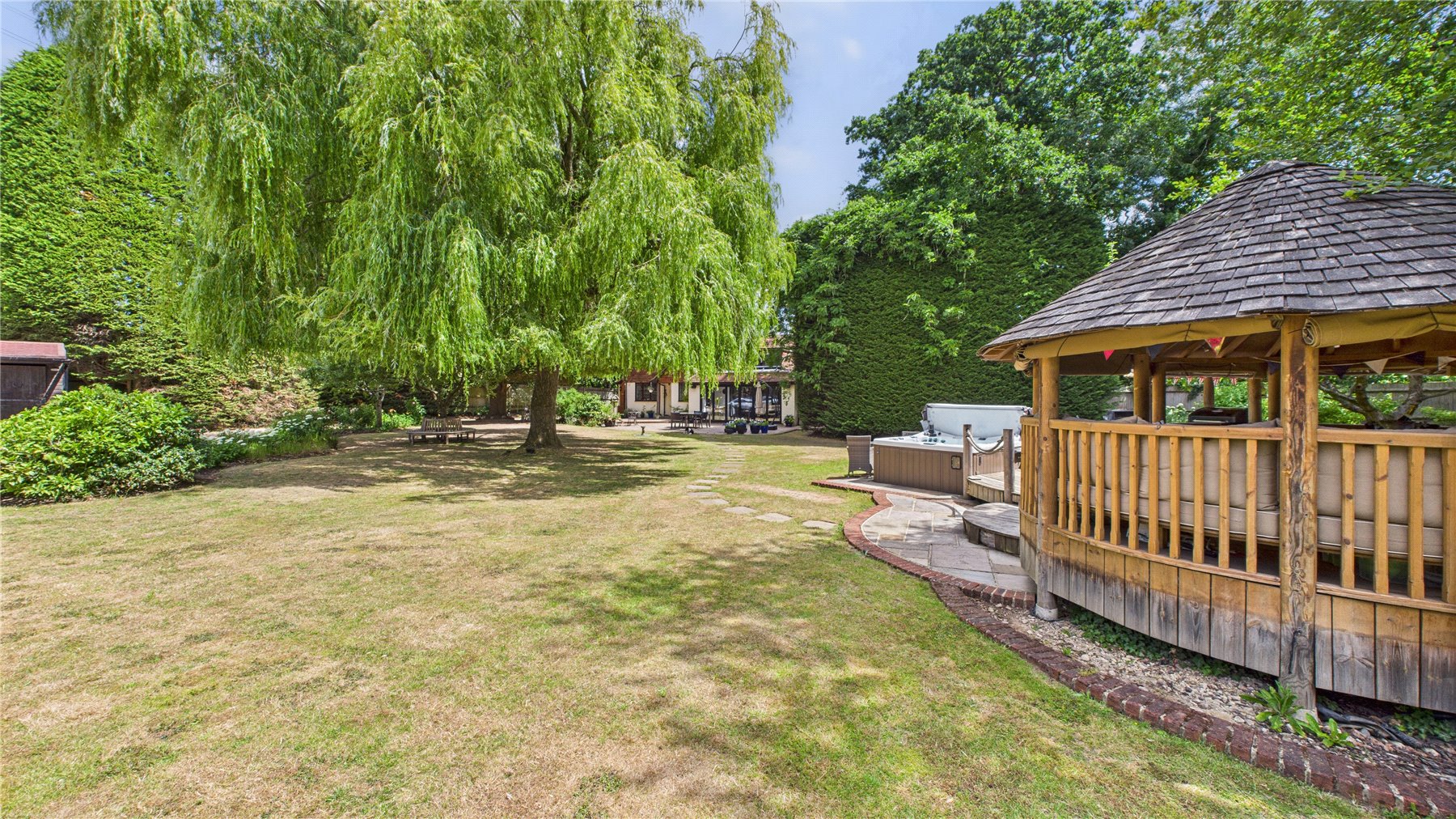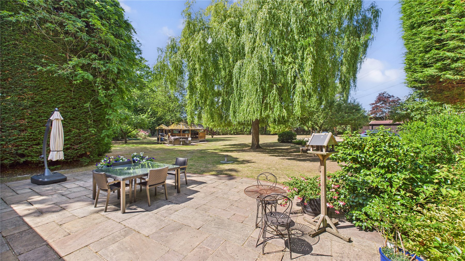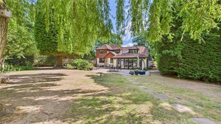 Nestled behind mature trees on a popular road in Chobham, this elegant four-bedroom detached residence offers expansive living space, a self-contained annexe, and beautifully landscaped gardens — all set within approximately one acre of private grounds. Meticulously extended and renovated by the current owners to an exceptional standard, the property combines classic charm with modern luxury, including a Sonos speaker system and an effortless flow throughout that makes it ideal for entertaining and family living alike.