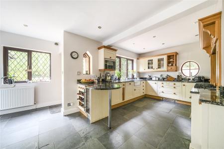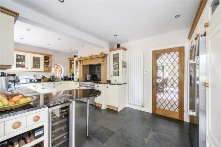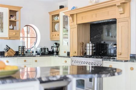 The excellent accommodation offers over 3900 square feet in total. At its heart lies a bespoke kitchen/diner, finished with granite worktops and premium appliances. The adjacent breakfast room opens via bi-folding doors to the terrace, inviting the outdoors in and creating a seamless indoor-outdoor experience perfect for hosting. A separate formal dining room, warm and inviting sitting room with exposed brick fireplace, and a dedicated study offer flexible and functional spaces that adapt to both everyday family life and weekend gatherings.