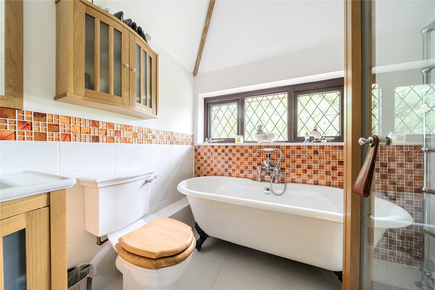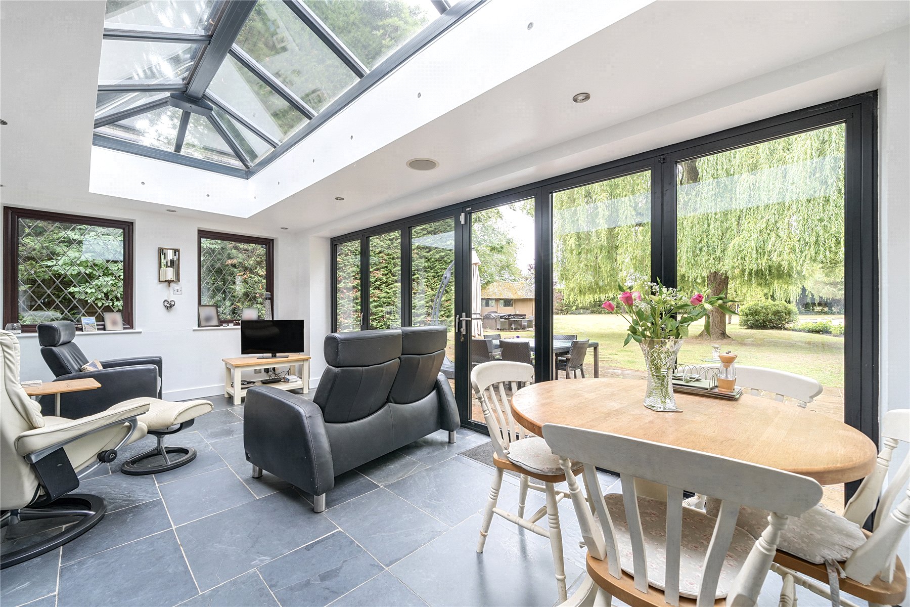 Located a short distance from the heart of Chobham village, with its award-winning restaurants, boutique shops, and easy access to surrounding countryside, this is a home that blends peaceful seclusion with everyday convenience. Woking station (London Waterloo in approx. 23 mins), the M3 and M25, and a range of excellent schools are all within easy reach.
