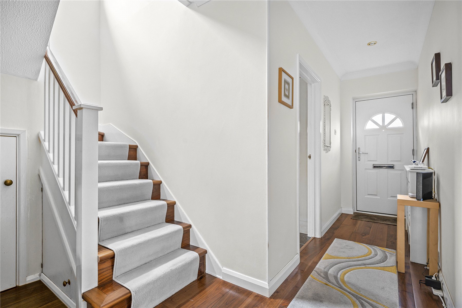 Internally, the property boasts four generous double bedrooms. The principal bedroom benefits from a modern en-suite shower room, while the remaining bedrooms are served by a contemporary family bathroom, featuring a P-shaped bath, WC and wash hand basin. Bedroom four is currently arranged as a home office, with direct access to a private balcony, an ideal spot for those who work from home.