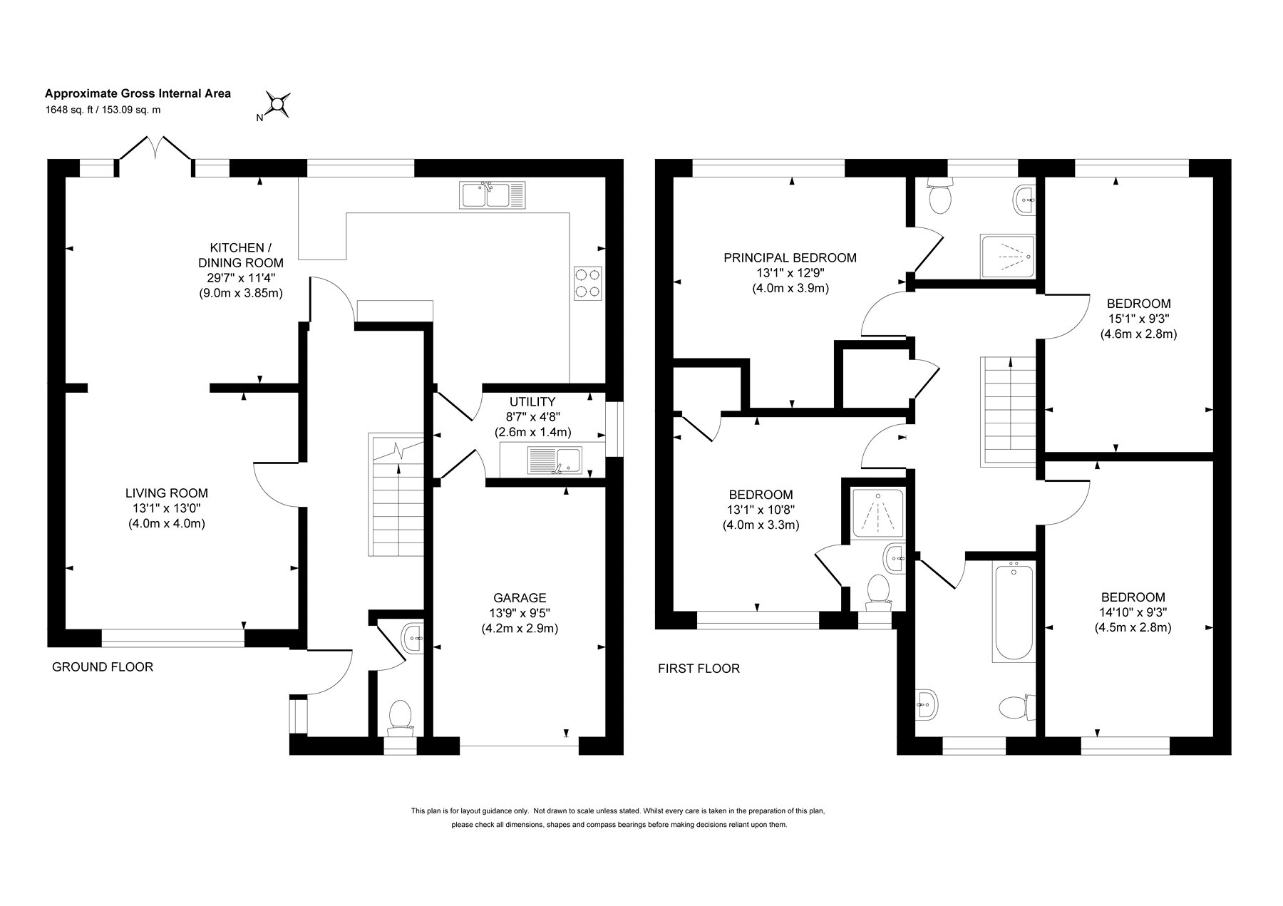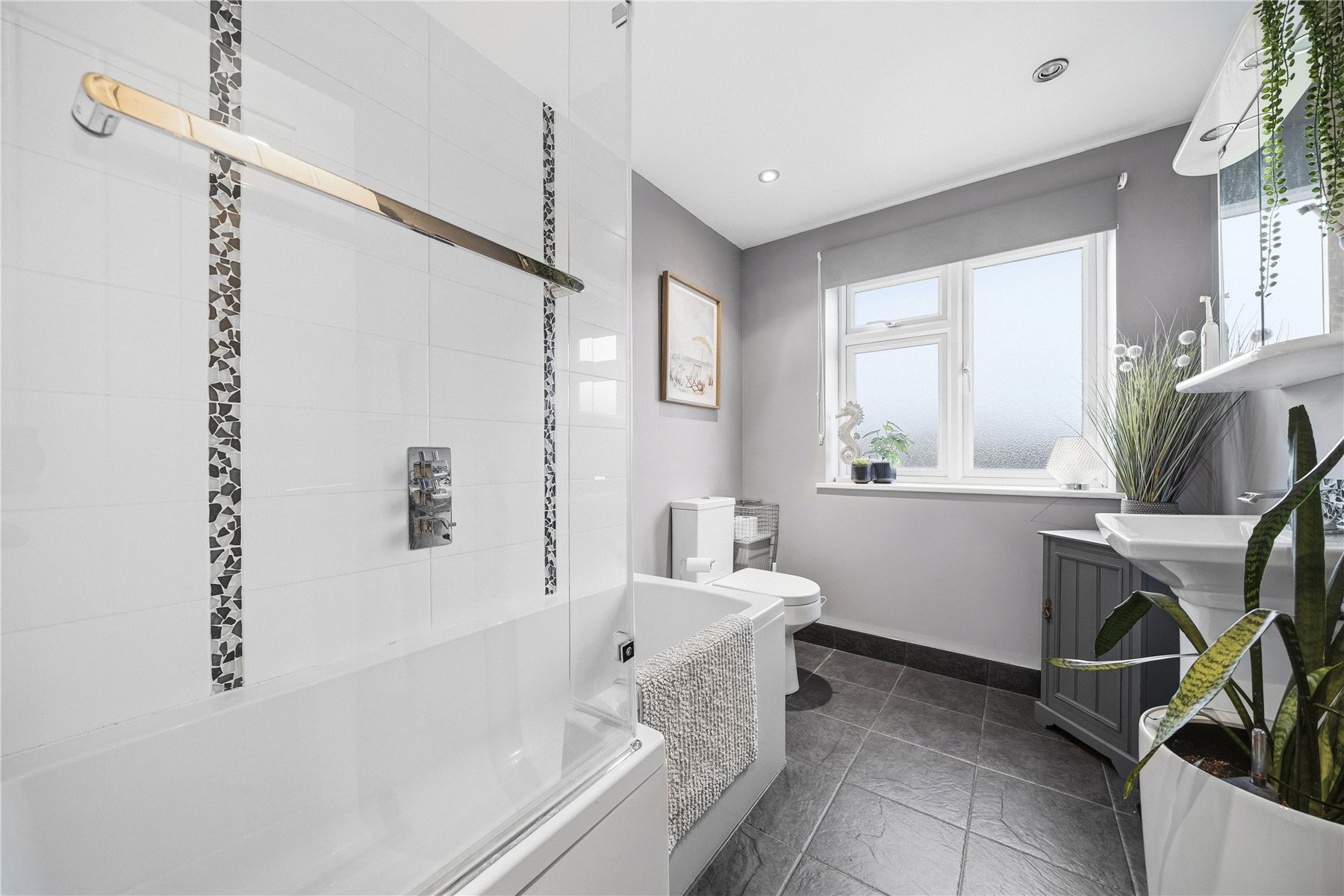 The accommodation comprises four generously sized double bedrooms, two of which benefit from ensuite bathrooms, making it ideal for families or those seeking flexible living space. A well appointed family bathroom is fitted with a modern three-piece suite including a wash hand basin, WC and square ended bath with wall mounted shower.