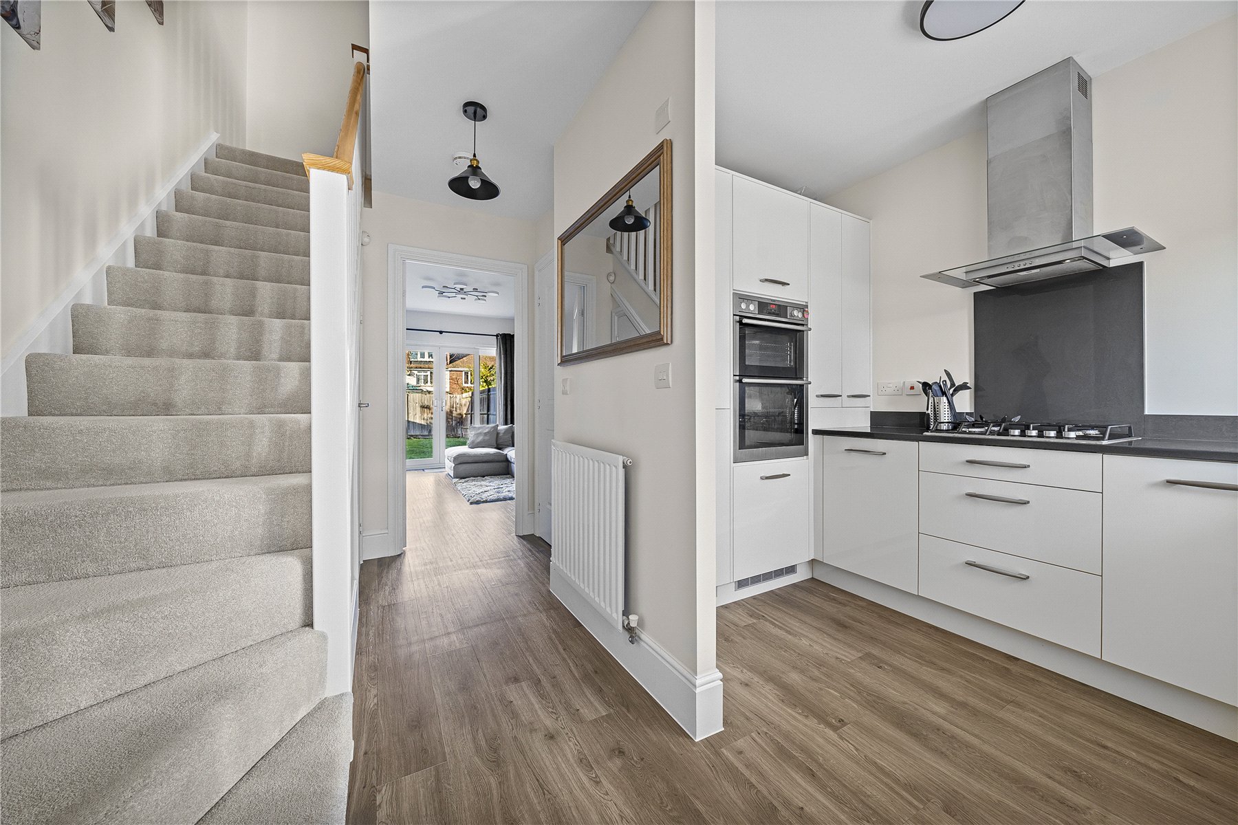 Outside, the appeal continues with a beautifully maintained rear garden, mainly laid to lawn and complemented by a smart patio area, ideal for al fresco dining or simply enjoying the sunshine.