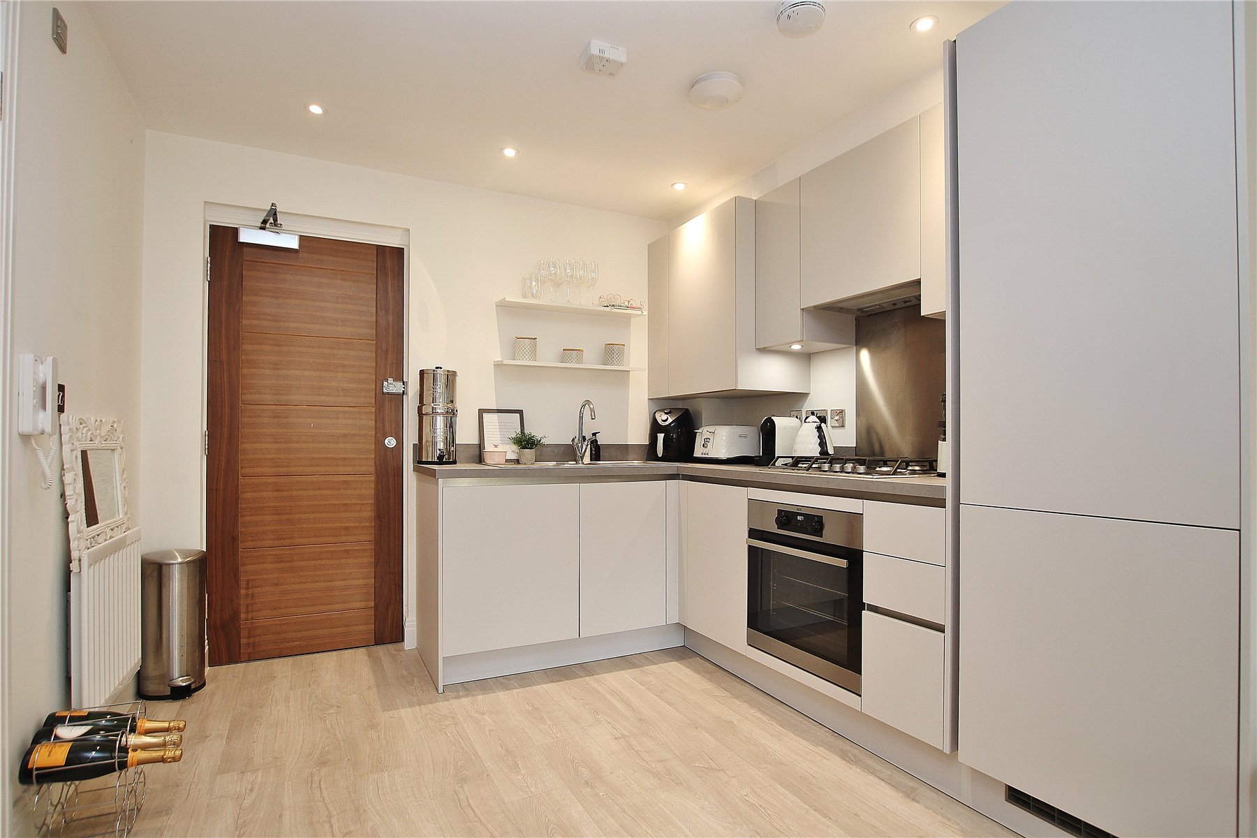 Upon entering the property, you are immediately aware of the high standard of finish, a theme that continues throughout the property. The main living space is open plan and incorporates the living room and kitchen that has been fitted with base and eye level units, an integrated oven with gas hob and integrated appliances.