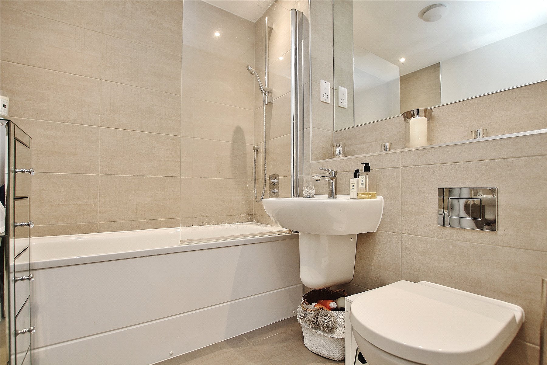 The bedroom is a well-proportioned double that enjoys the use of built in wardrobes. The bathroom has been fitted with white sanitary ware comprising a wash hand basin, w/c and bath with a wall mounted shower. Stylish floor to ceiling tiles complete the room.