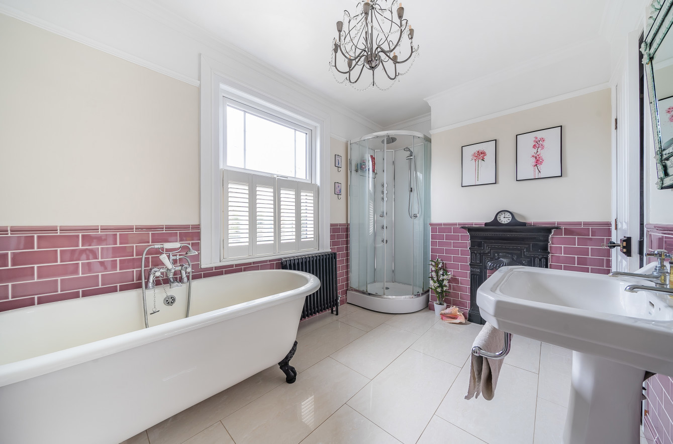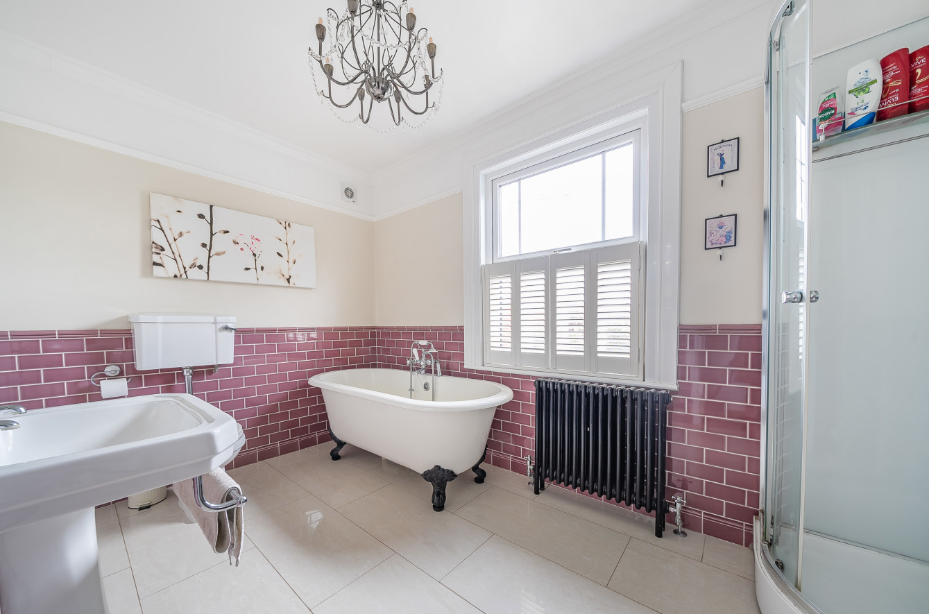 Downstairs are three reception rooms that include a cosy front aspect lounge with a cast iron fireplace and bay window with custom fitted shutters. The dining room is located in the middle of the property and also boasts a feature fireplace that has been fitted with a log burner while an understairs cupboard provides useful storage. A family room offers further living space and access to the garden through double doors. The kitchen/breakfast room is located towards the rear of the property and has been fitted with a range of base and eye level shaker style units that are well complimented by black granite worktops. A breakfast bar provides space to sit and a pitched roof creates the feeling of space. A further benefit is underfloor heating in both the kitchen and bathroom.