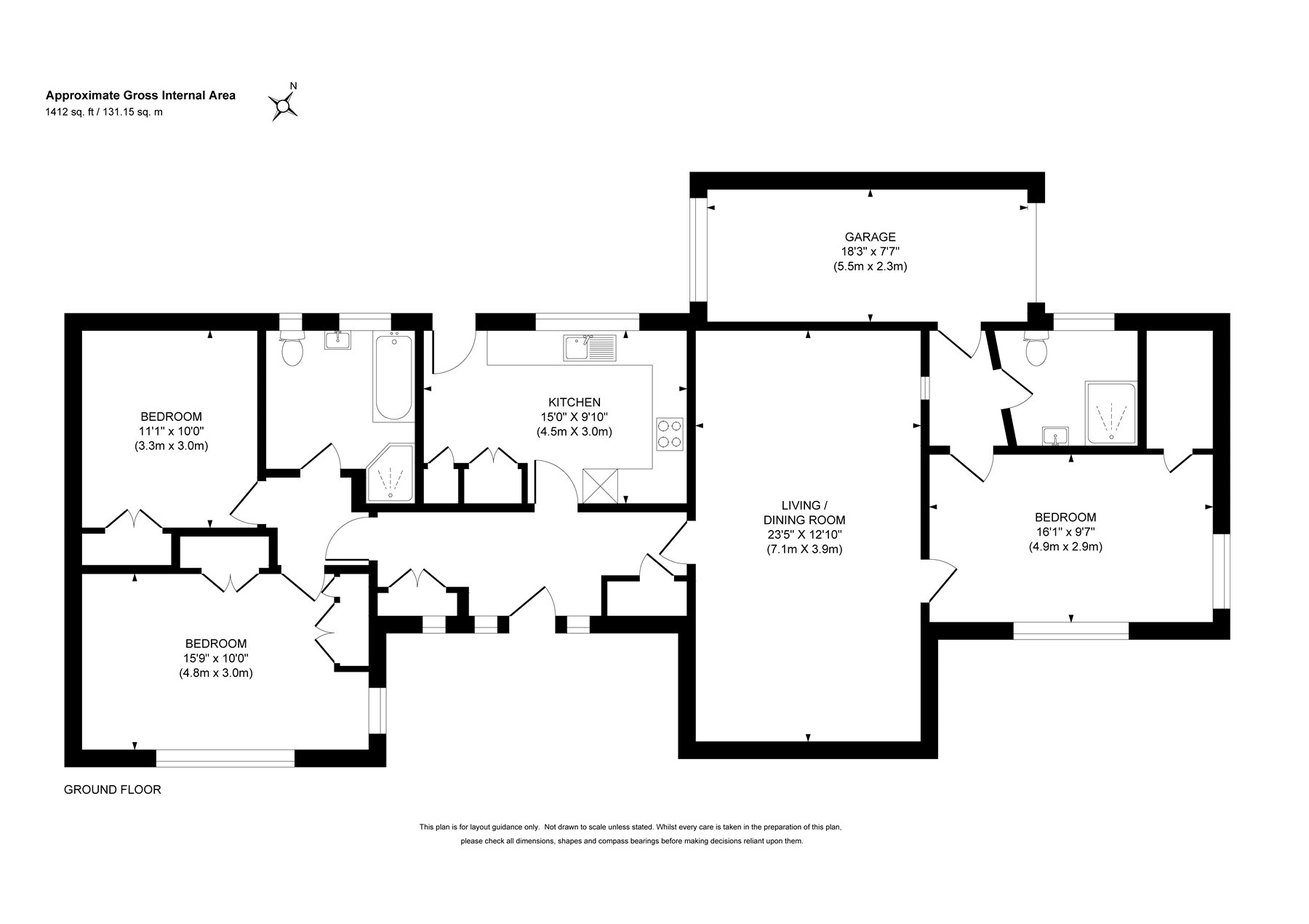 - Three Double Bedrooms