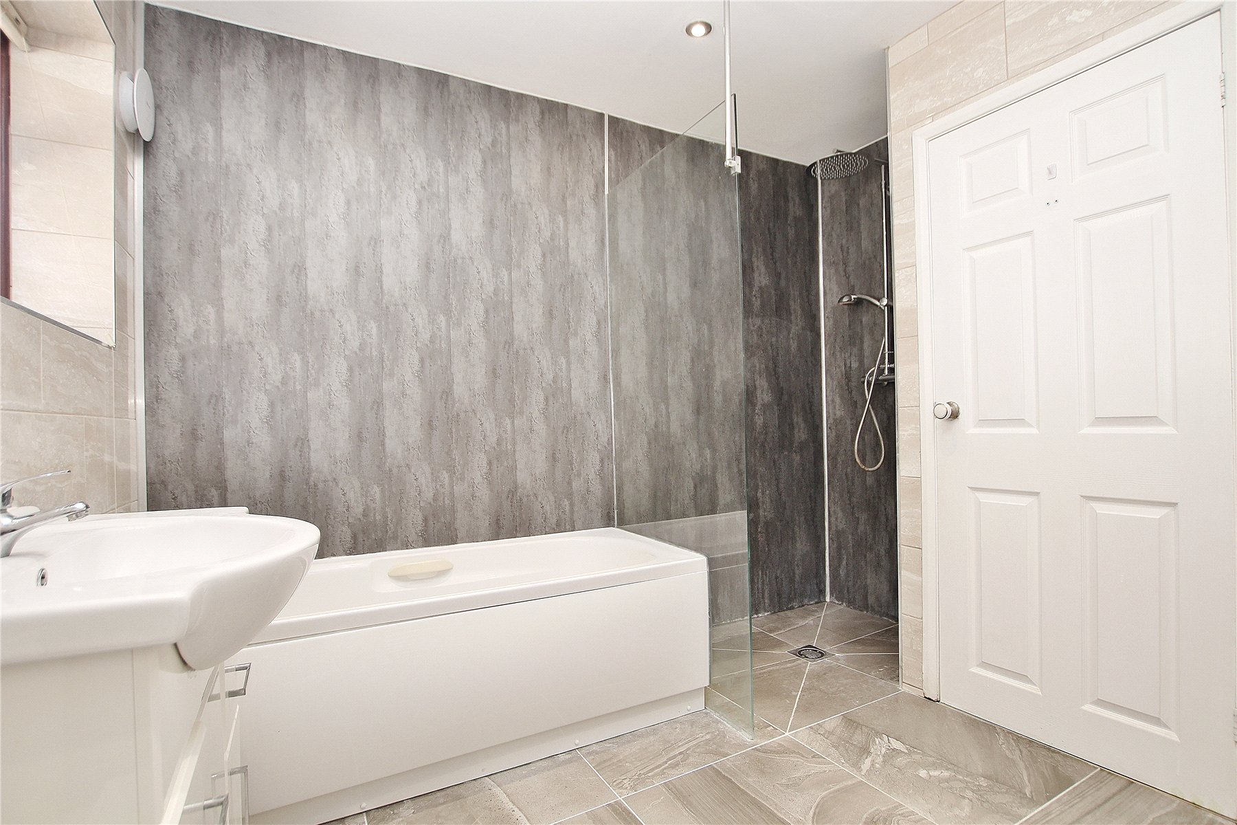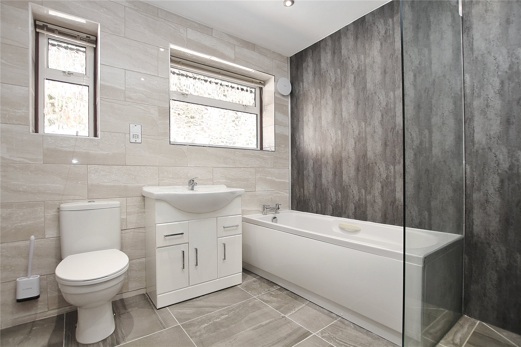 The property has been recently renovated throughout and offers accommodation to include three double bedrooms, two of which benefit from built in wardrobes. These share the use of two bathrooms, one fitted with a four-piece suite comprising a bath and walk in shower cubicle, the other fitted with a shower. In addition, there is a spacious lounge/dining room with double doors leading to the garden. A well appointed kitchen has been fitted with a range of high gloss, base and eye level units, integrated double oven, electric hob and space for appliances.