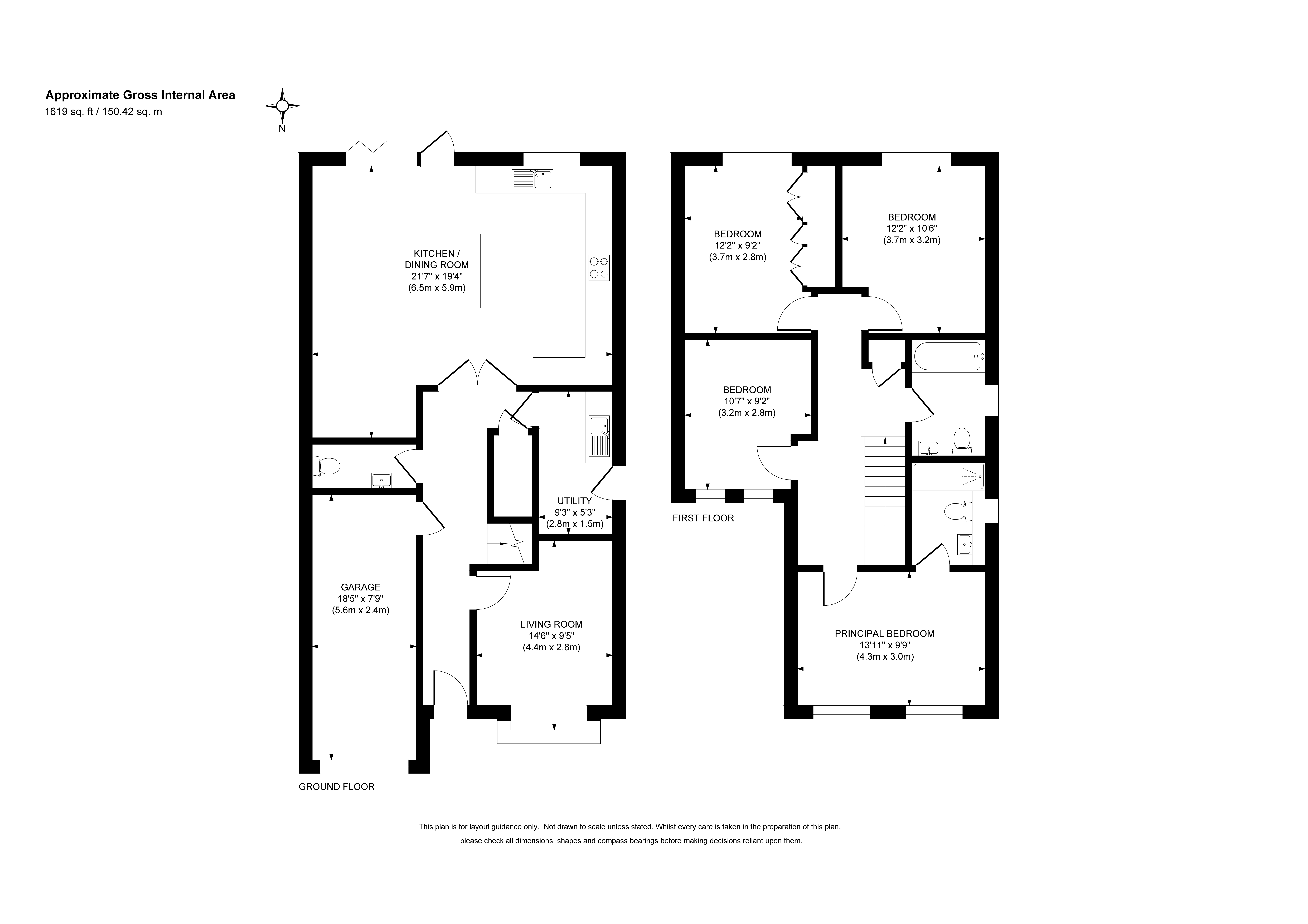 The property is beautifully presented throughout and boasts four spacious bedrooms, including a generous principal suite complete with a stylish ensuite shower room featuring a walk-in shower cubicle, wash hand basin and elegant gold fittings. The remaining bedrooms are served by a sleek, contemporary family bathroom.