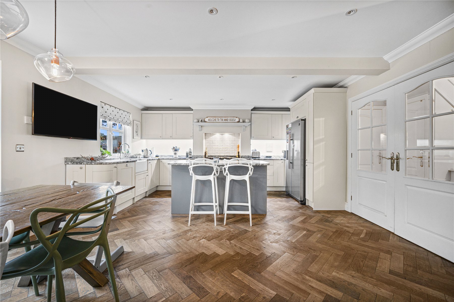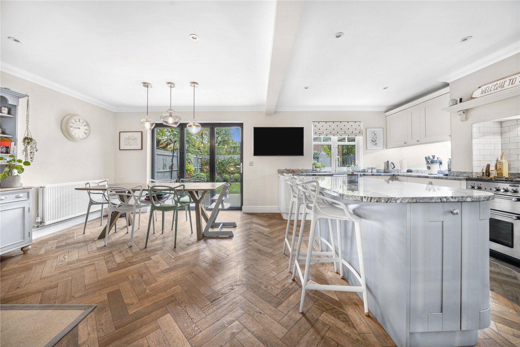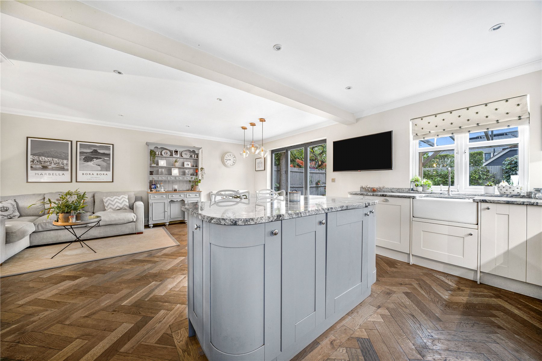 Located in a sought-after residential area and within just 685 metres of Gordon's School, with Holy Trinity School also a short walk away, this stunning detached family home has been comprehensively renovated and re-modelled by the current owners to offer modern, open-plan living ideal for contemporary family life.