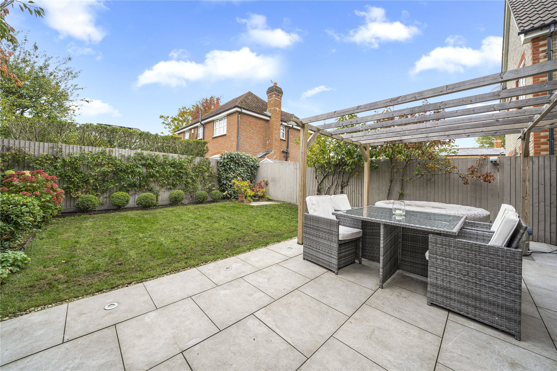 Externally, the South-facing rear garden is mainly laid to lawn and features a pergola-covered patio, perfect for outdoor entertaining. A gravelled driveway to the front provides off-street parking.