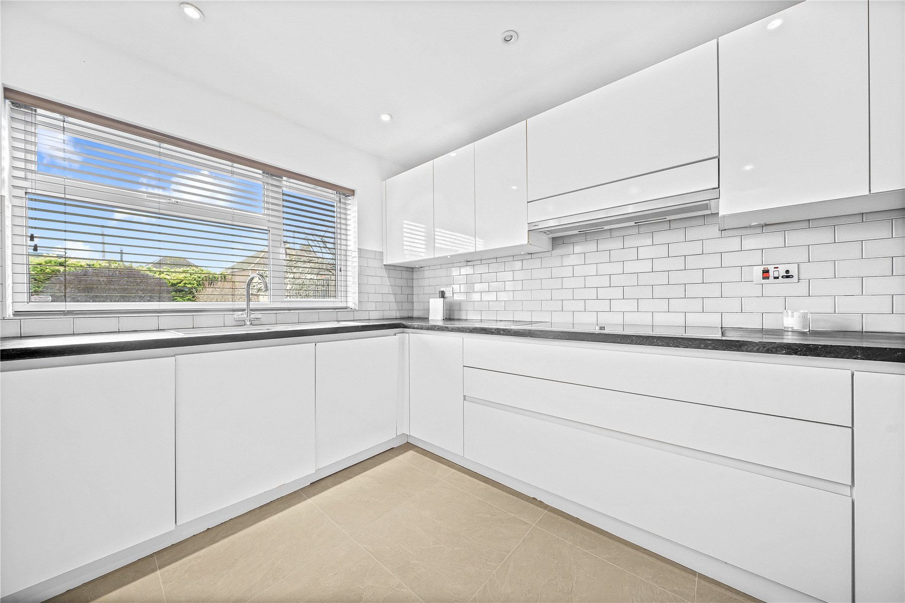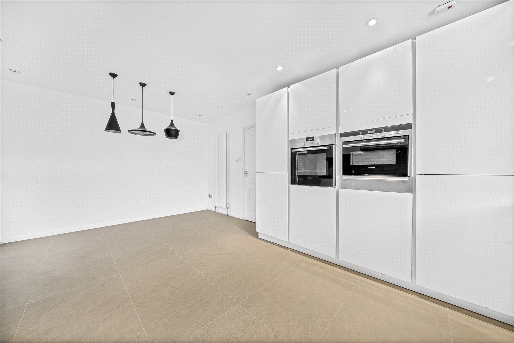 Downstairs, the property opens into a spacious front aspect kitchen/dining room, fitted with a range of contemporary high gloss base and eye level units and complemented by integrated appliances, providing an excellent space for family living and entertaining. To the rear of the property are two separate reception rooms, offering flexible living accommodation with views over the garden. A further benefit includes a downstairs cloakroom.