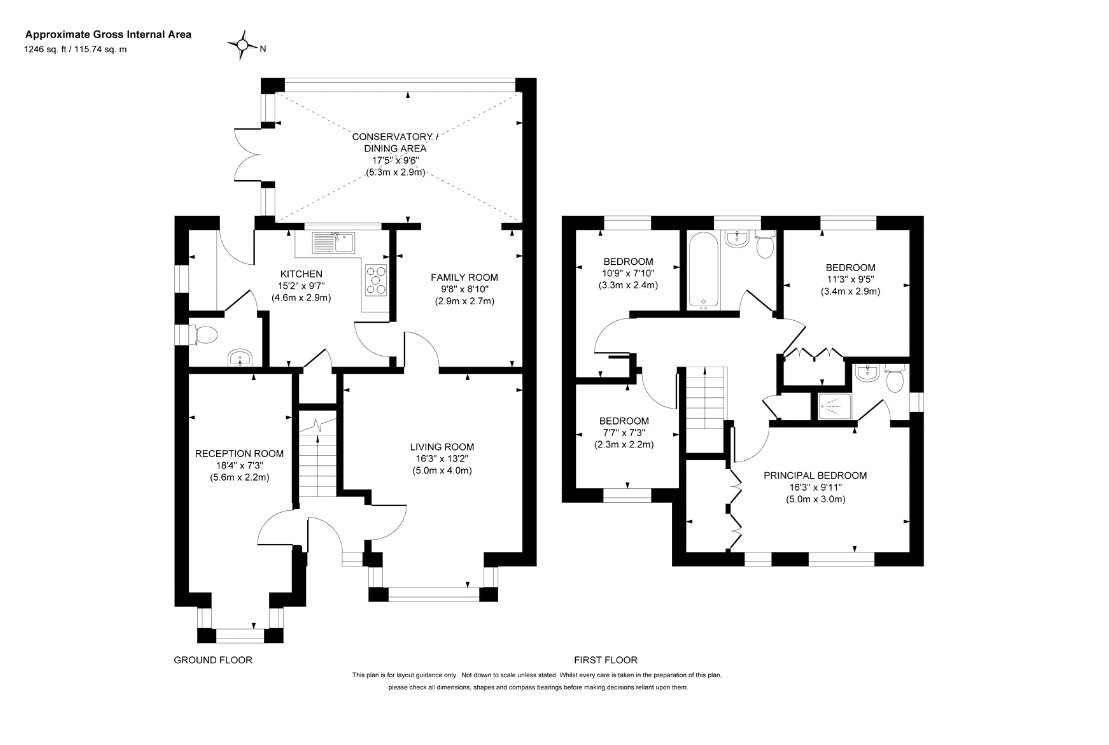 To the rear of the property is a dining room with an adjoining kitchen, fitted with a range of high gloss base and eye level units. A large conservatory has been added, enhancing the sense of open-plan living and providing excellent additional reception space overlooking the garden. A downstairs cloakroom completes the ground floor accommodation.