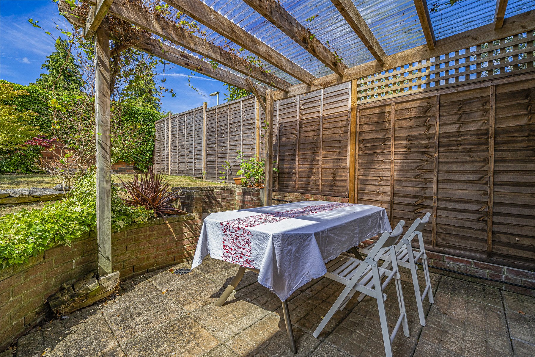 Outside, the rear garden is private and secluded, making it ideal for family enjoyment or entertaining guests. A charming pergola-covered patio area provides a sheltered and inviting space to relax and enjoy the outdoors.