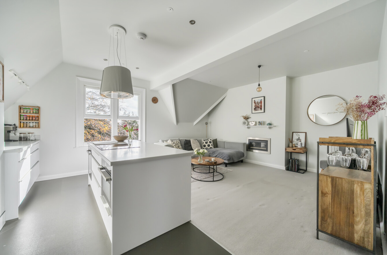 The accommodation comprises three generously appointed bedrooms, a beautifully designed luxury bathroom, and a magnificent open-plan kitchen and reception space. This showstopping heart of the home features a statement island, premium fittings, and a stylish gas fire, perfectly balancing sophistication with comfort.