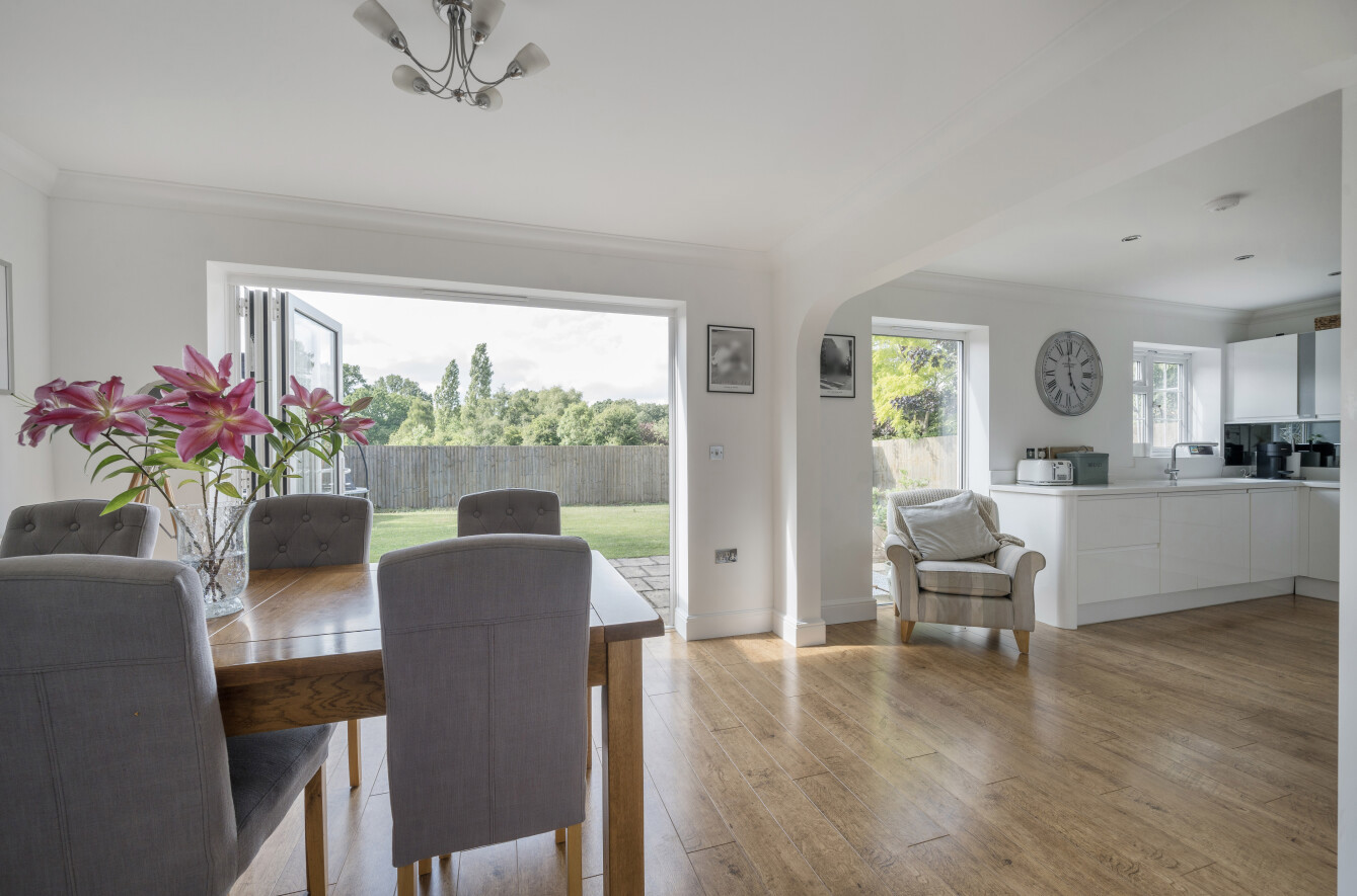 Upon entry you are met by a magnificent hallway which is wide and welcoming. It also showcases a lovely, exposed staircase and stunning oak wood flooring. Straight in front of you is the heart of the home.... a delightful kitchen/dining room which is bright and airy, boasting quality 'in-built' appliances and a utility area found just off it. You will find bi fold doors that lead through to the very sunny garden allowing for a fabulous, continuous flow and the icing on the cake is that the house backs onto private land giving the setting a lovely rural feel. When you open the blinds in the morning you are regularly met with the sight of the local wildlife! Fire up the BBQ in the summer and you're left with nothing but you and the birdsong whist watching the sun set beyond the trees.... Lovely!