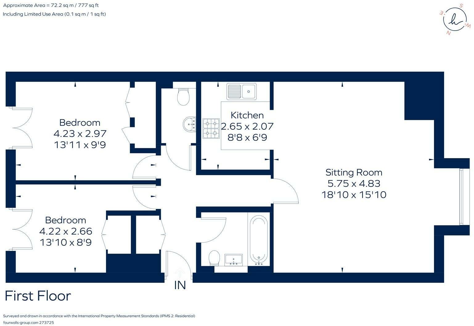 Affording 777 sq ft of space, the property is well presented with spacious rooms throughout, including an expansive sitting and dining room open plan to a modern kitchen, fitted with a double oven, gas hob, extractor, integrated washing machine and integrated fridge and freezer units.