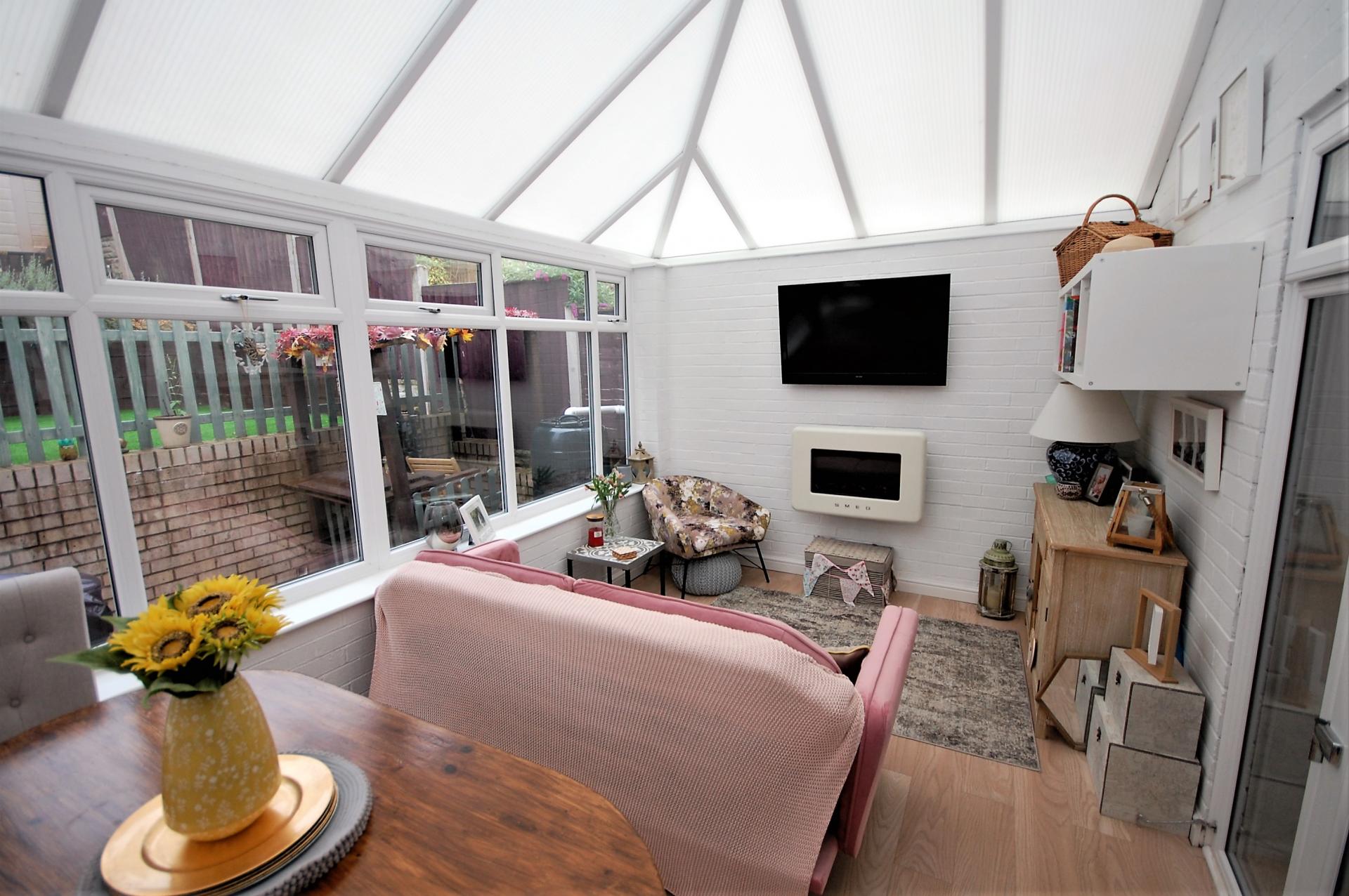 The accommodation on offer includes an entrance hall, modern kitchen, lounge, conservatory, garage with a most useful home office space, 3 bedrooms, bathroom, gas central heating, a raised garden to the rear and an ample driveway provides off road parking to the fore.