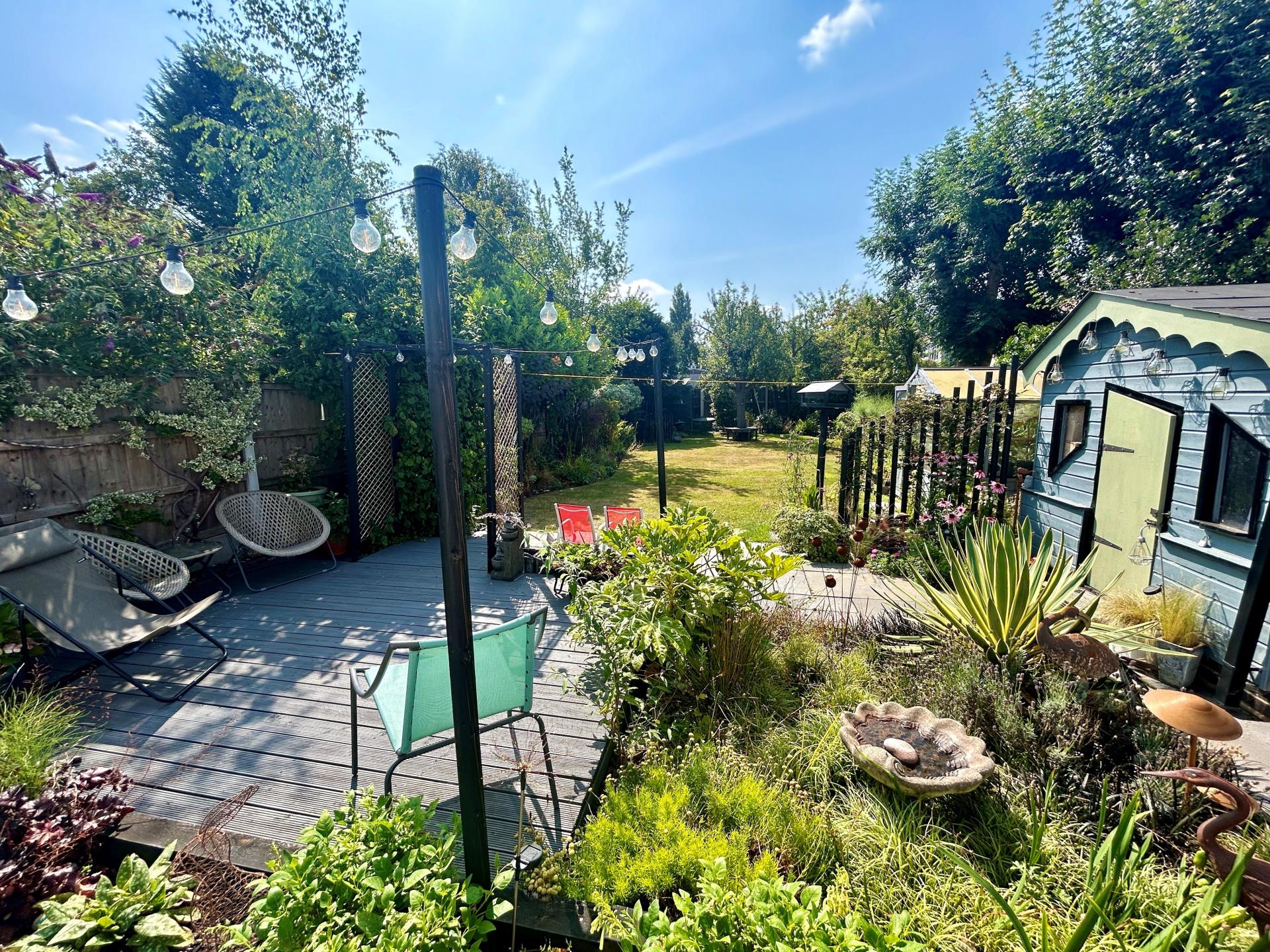 Outside offers a beautiful and mature rear garden with most pleasant flower and shrub borders accompanied by a decked patio area and outside bar thought ideal for entertaining whilst to the fore is a driveway allowing off road parking.