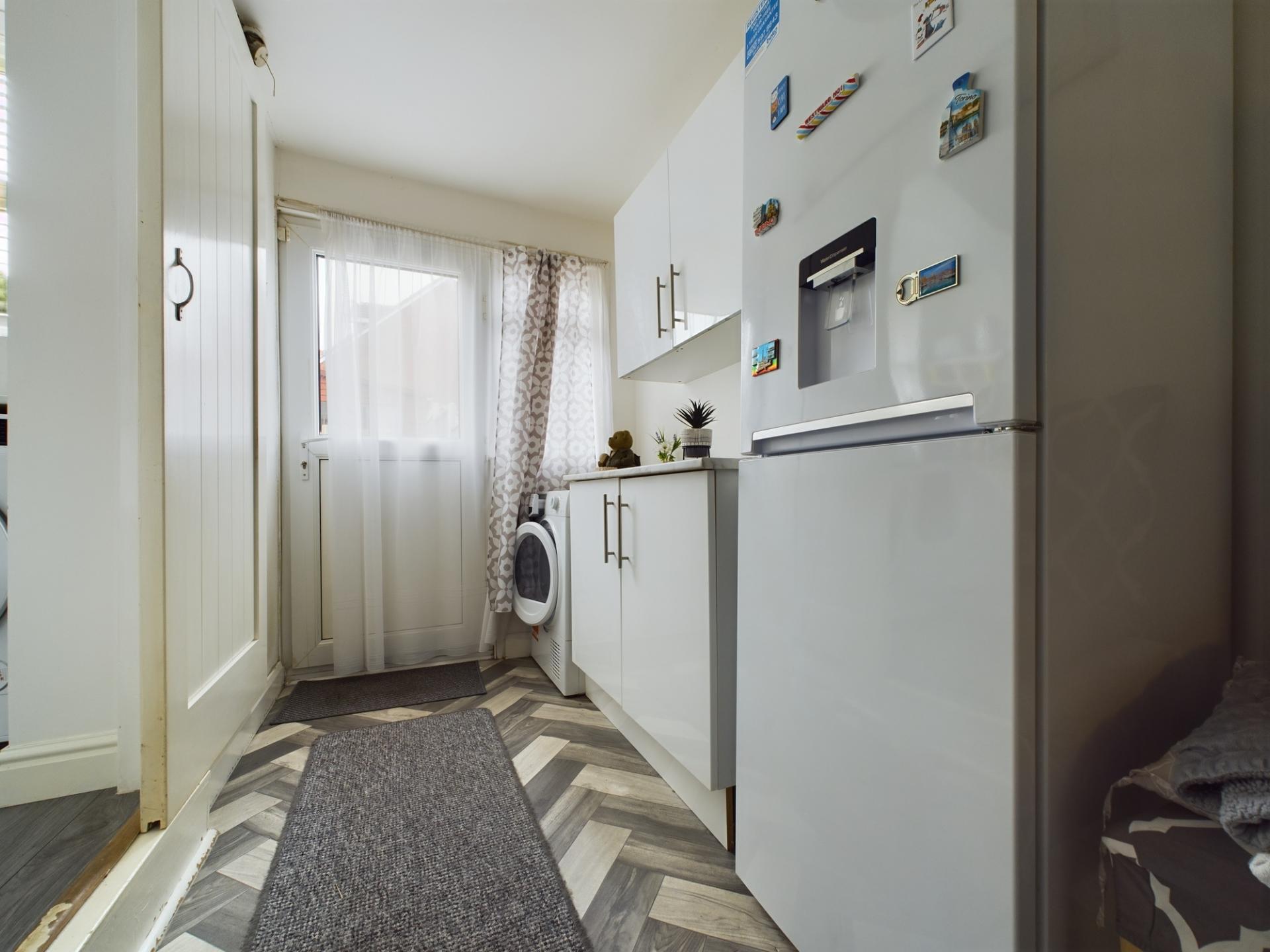 The accommodation enjoys an entrance hall, kitchen area opening up to the lounge and dining areas, utility space, garage store, three bedrooms, bathroom with shower over, a most pleasant and generous rear garden and off road parking is provided to the fore.