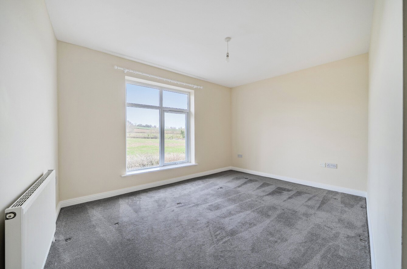 Entered via a communal entrance and hall, the apartment is accessible via stairs or lift to the first floor. The inner hallway provides access to two bedrooms, to the left a single bedroom and to the right a principal bedroom benefitting from built in wardrobes plus a modern bathroom with rainfall shower head over the bath. Further on, the kitchen/breakfast room is fitted with an extensive array of wall and base units, together with integral dishwasher, washing machine, fridge, freezer, Bosch oven and 4 ring induction hob. In addition, there is ample space for a table and chairs. The dual aspect sitting room enjoys French doors to a balcony with wonderful views over the fields opposite.