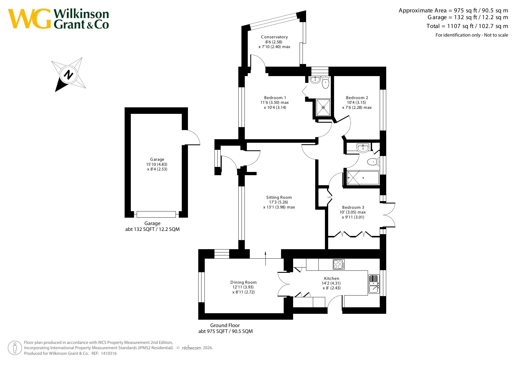 This well-proportioned three-bedroom detached bungalow that offers approximately 975 sq ft (90.5 sq m) of versatile living space, complemented by a detached garage and surrounding private garden. A welcoming entrance hall leads to a spacious sitting room with large window to the front and a feature coal effect gas fireplace.