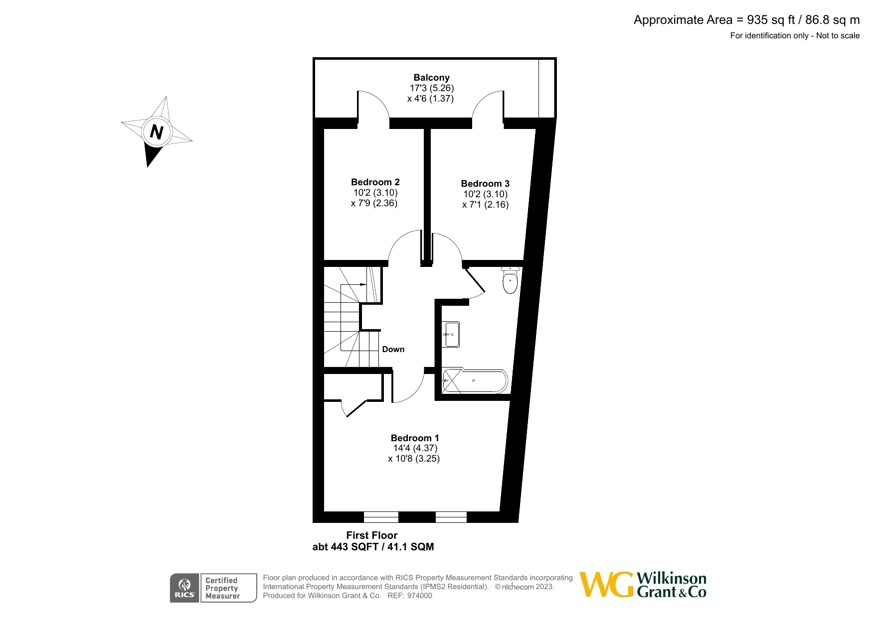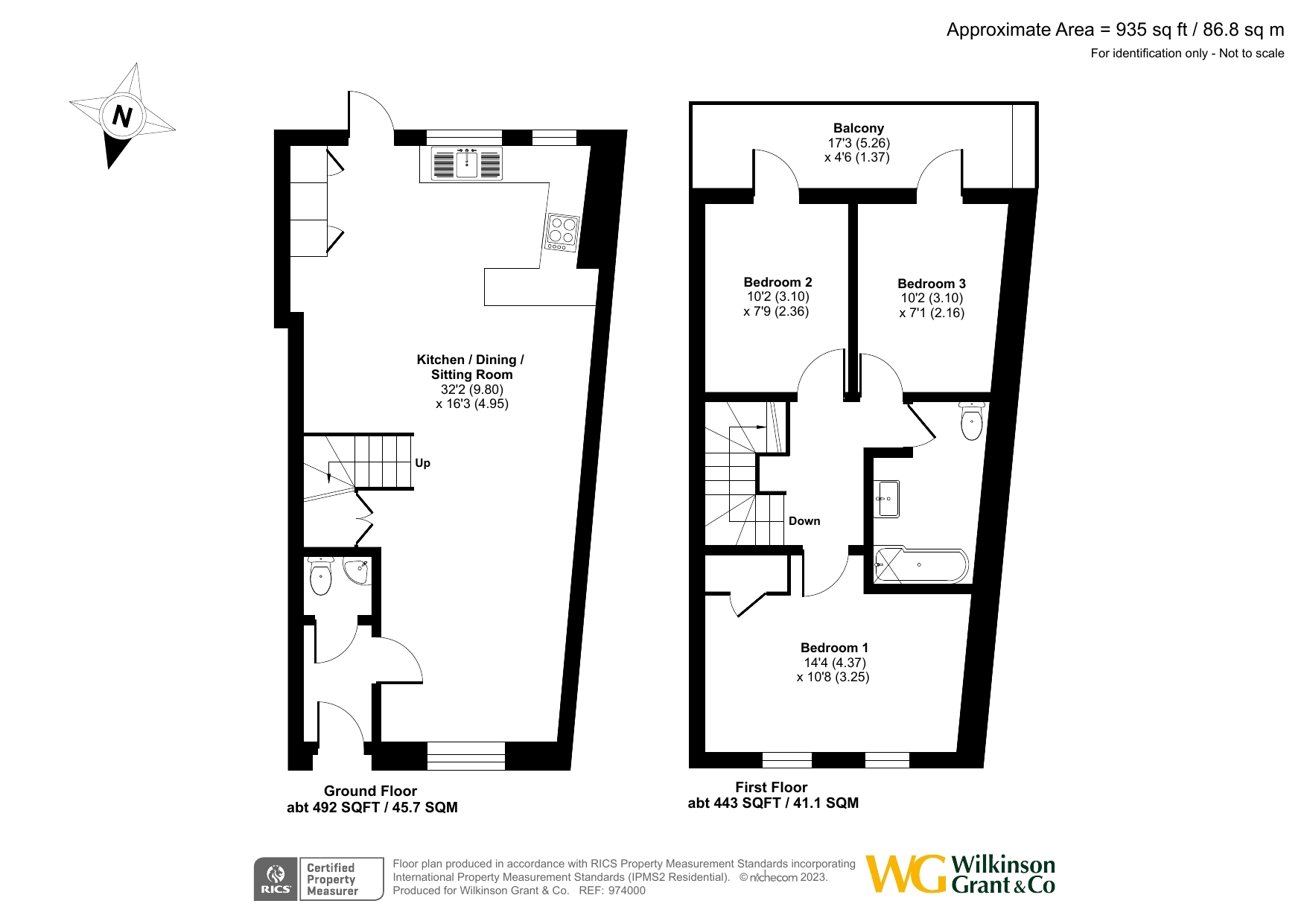 On the first floor are three good sized bedrooms. The principal bedroom with vaulted ceiling benefits from two windows, allowing light to flood through and a built-in storage cupboard. Bedrooms two and three both enjoy access to a South facing balcony running the width of the house at the rear a pleasant space to relax and enjoy the afternoon sun. Completing the accommodation is a modern bathroom with overhead rainfall shower.