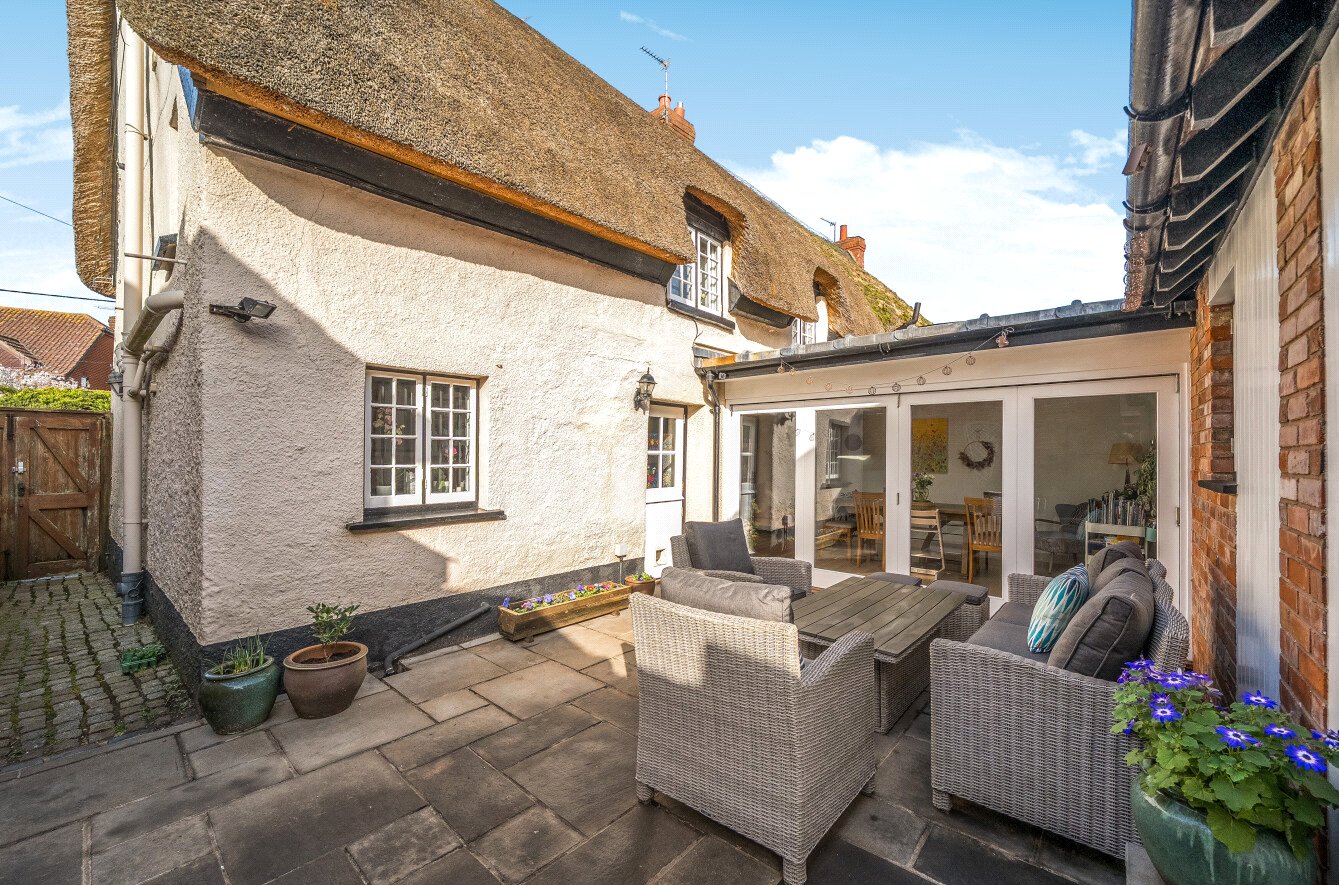 AGENTS NOTE: The vendors advise that the property was fully re-thatched with water reed in the Winter of 2022/2023. They also advise they have a peppercorn agreement with the Parish Council to use the back gated access for access to the car park - please ask the agents for further details and that the property benefits from multiple security cameras.