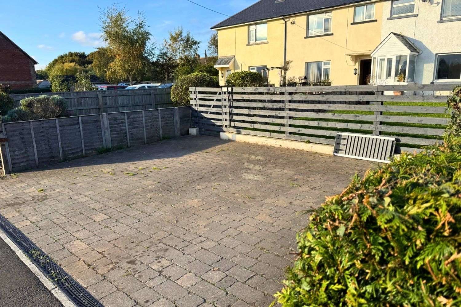 Approached across a block paved drive with parking for 2 cars, a path with adjoining level lawn leads to the entrance porch with inner door. The front aspect of the property offers distant views of surrounding hilltops and the Haldon Hills.