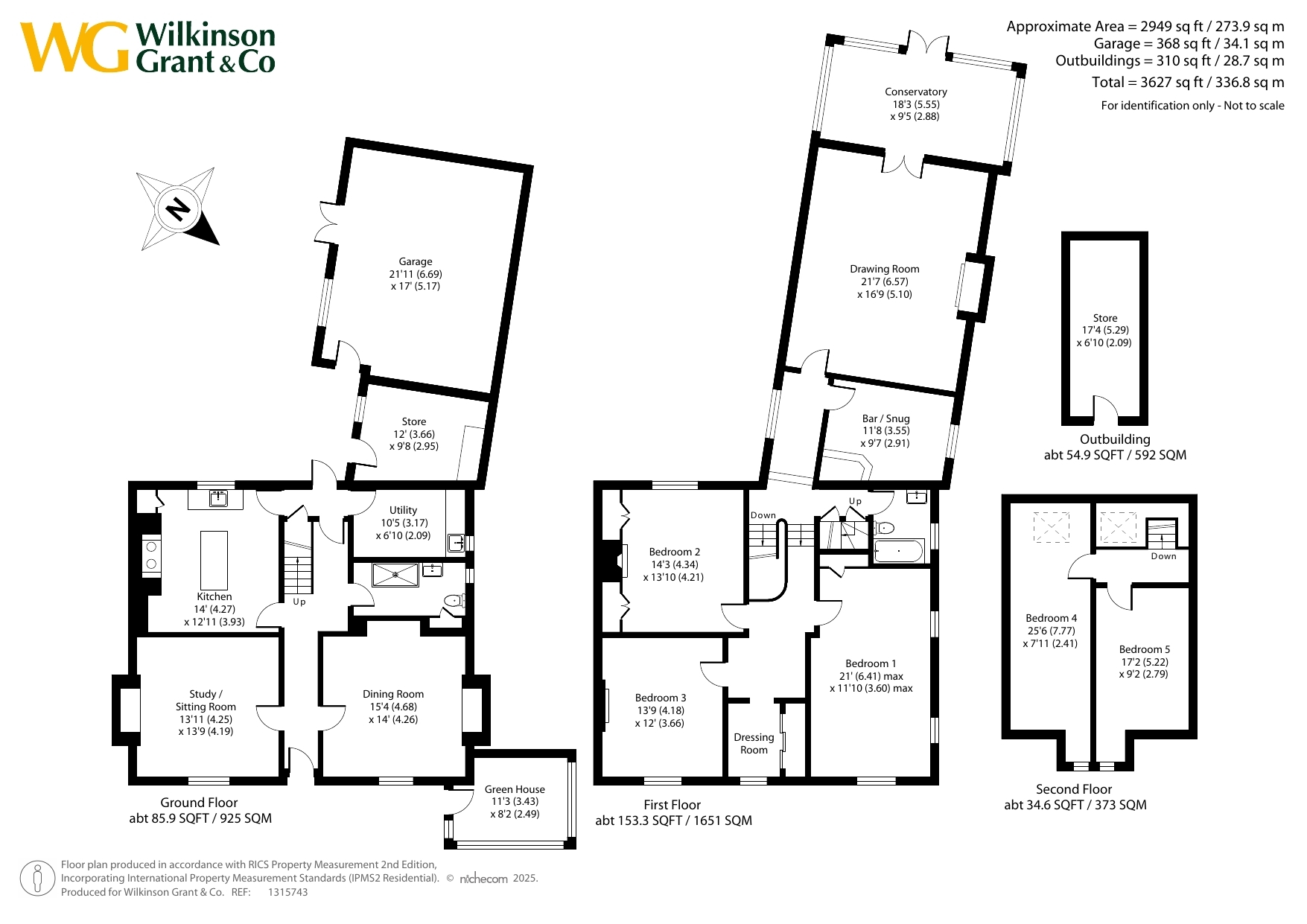The outside space sets this property apart from many with its extensive grounds. A pedestrian gate leads to the front door, which is set back from the road. To the right is a greenhouse. To the left a vehicular passage leads to a charming cobbled courtyard offering ample parking and turning. The 22' x 17' garage adjoins a large storeroom. The rear gardens are incredibly secluded and comprise sweeping lawns and interspersed with, and bordered by, a number of well established trees. It offers a genuine sense of peace and tranquillity.