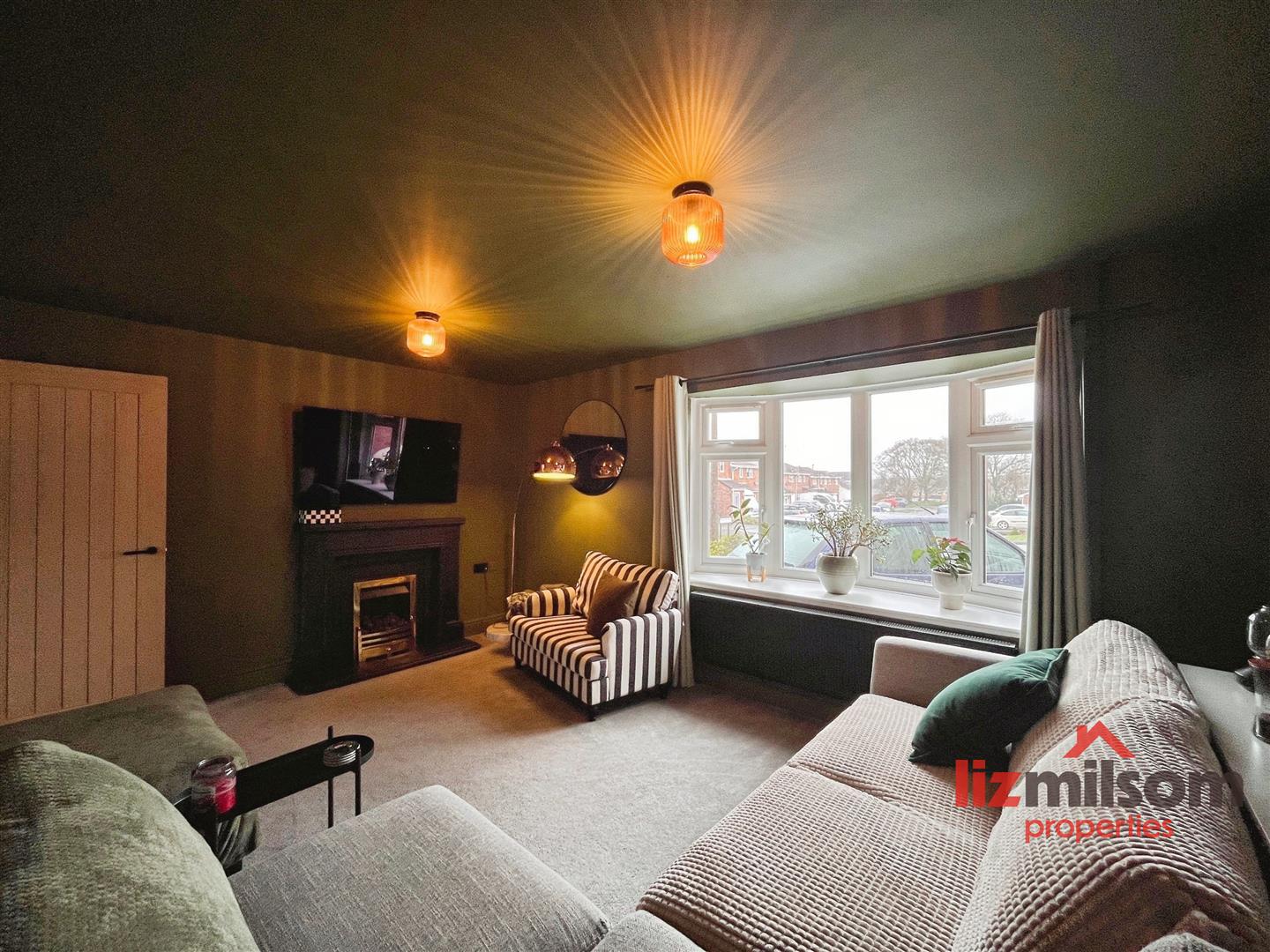 - Spacious front lounge with feature bow window and gas fire