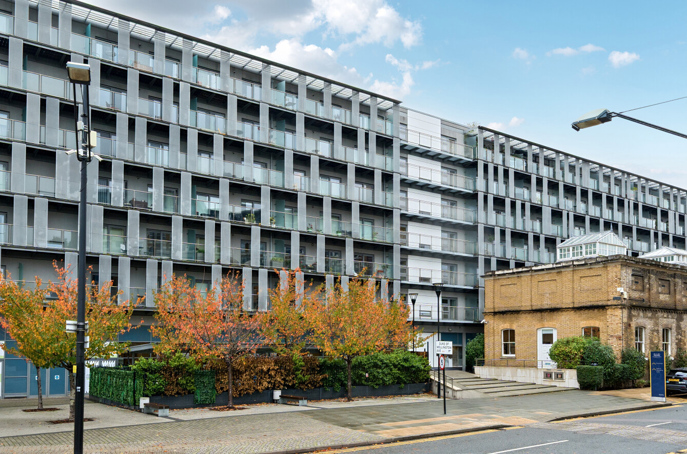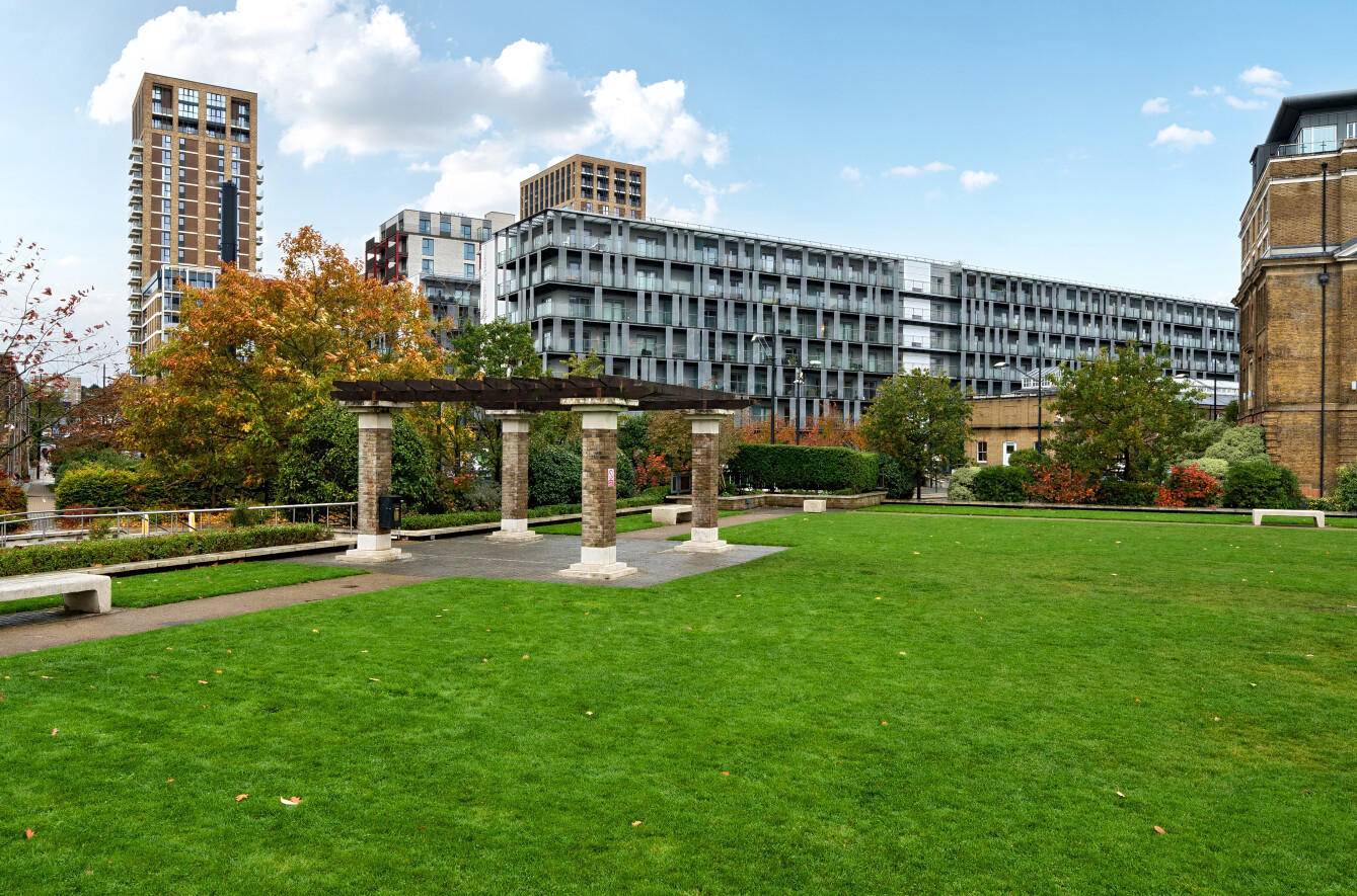 A modern, one bedroom, fifth floor flat having the benefit of a private terrace facing the lagoon set in a gated section of popular Royal Arsenal Riverside.