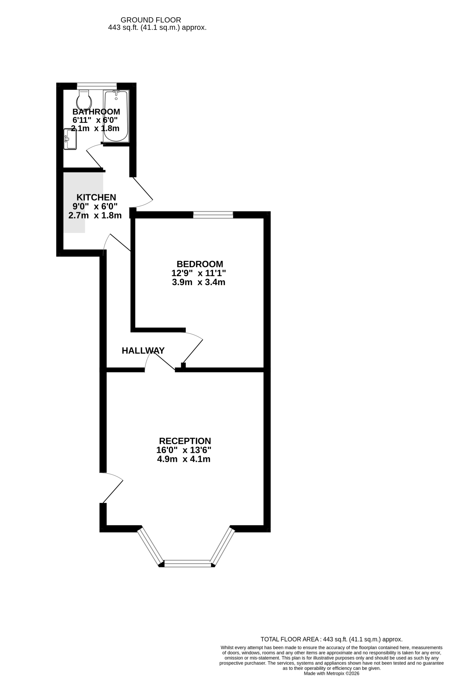 The accommodation features a bright and airy lounge enhanced by a bay-fronted window that floods the space with natural light, creating a welcoming and comfortable living area. The double bedroom is a good size, while the fitted kitchen and bathroom with shower offer functionality and scope for personalisation.