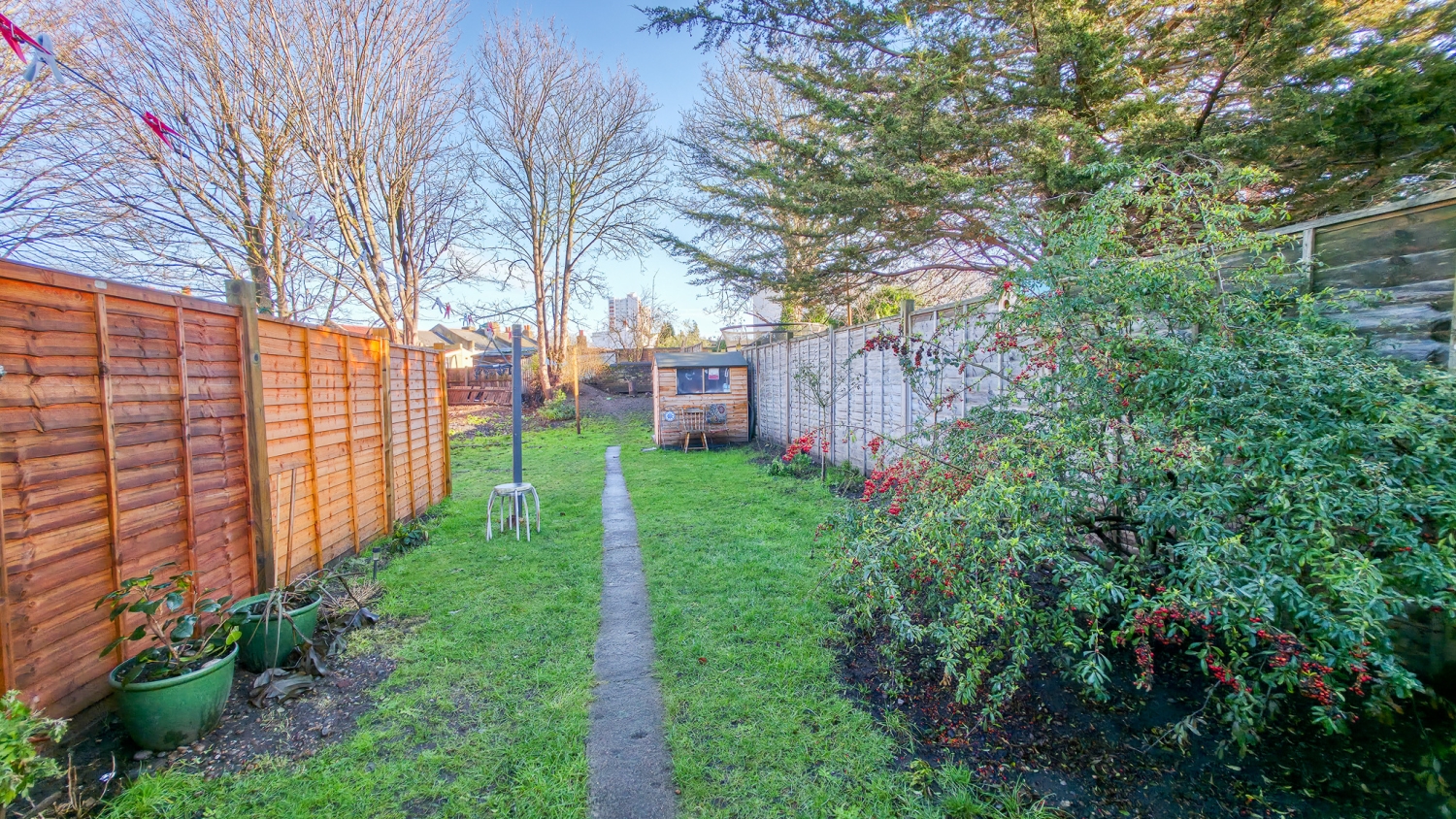 The ground floor features 2 reception rooms filled with natural light, a separate fitted kitchen, and a family bathroom. To the rear, a large private garden provides a tranquil outdoor space, complete with an outhouse for storage. Upstairs, the property comprises 3 bedrooms. On-street permit parking is also available.