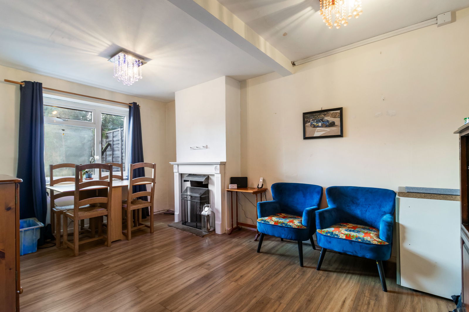 Having a feature fireplace with wooden surrounds. TV point. Laminate flooring. Staircase to first floor. Openings through to the living room. Double glazed window to rear overlooking the garden.