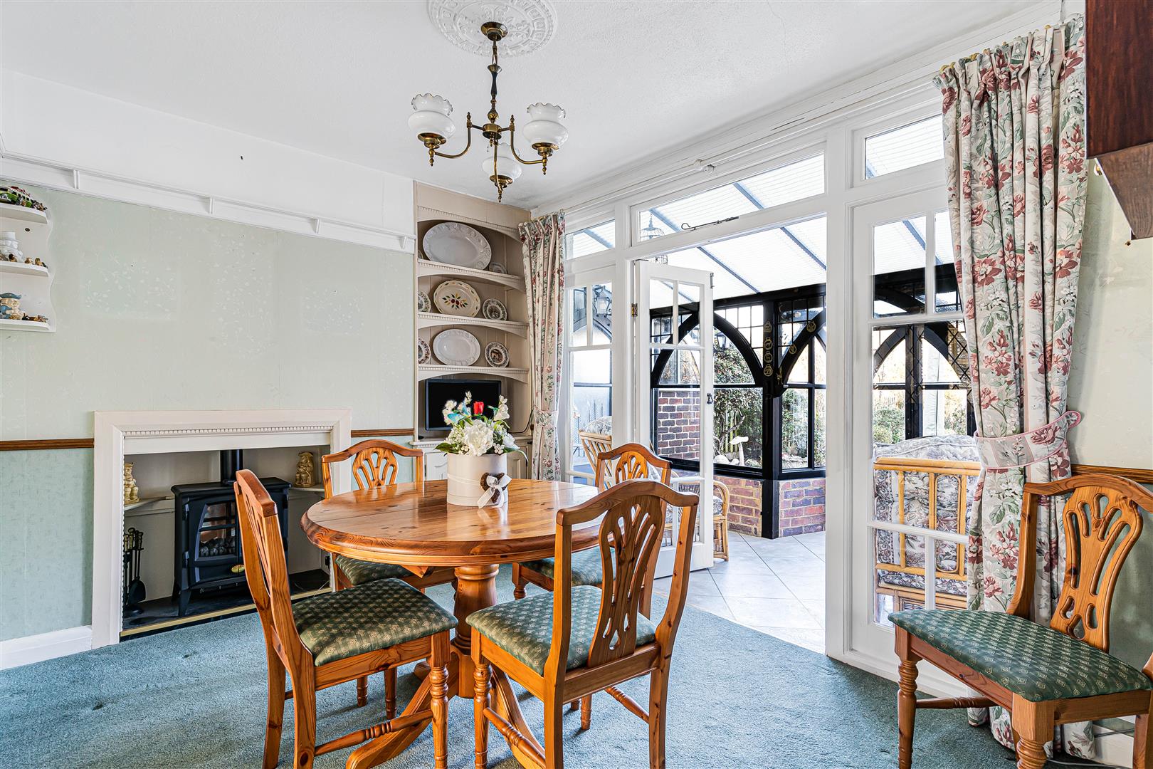 - Kitchen/dining room leading to conservatory