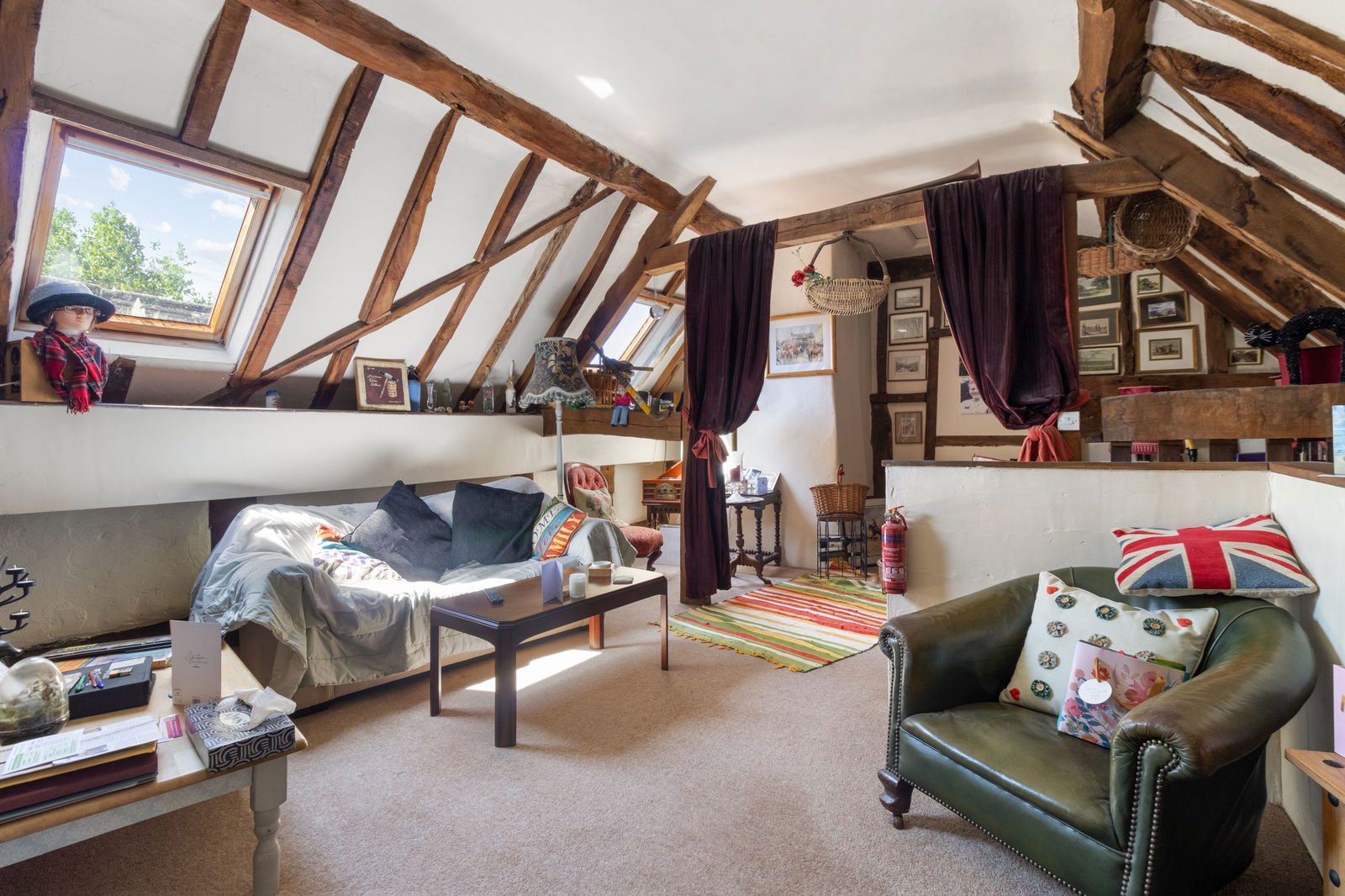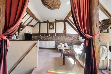 Briefly comprising Entrance Dining Room leading through to a quaint galley kitchen . The first floor has two spacious bedrooms and generous bathroom with a stair case to the second floor with a spacious living room with vaulted ceiling and further study area.